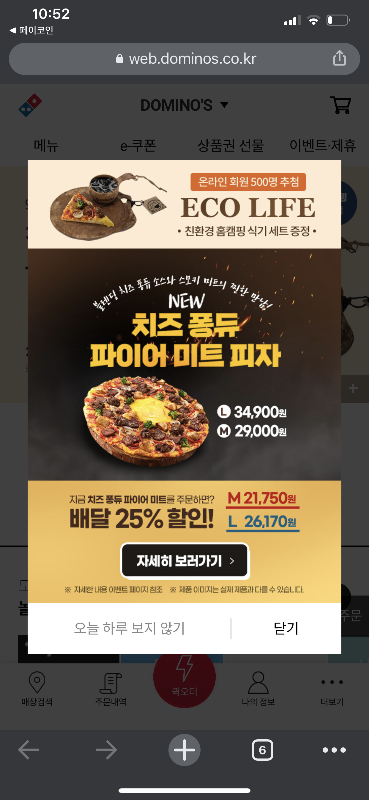 현재 재택근무를 하는 중이라 집에 피자를 주문해서 먹을 수 있는 상황이었어요. 저는 점심으로 피자를 먹기 위해서 점심식사 직전 시간대에 주문을 준비했어요. 할인이벤트는 도미노피자 웹, 앱 등에서 로그인을 해서 적용받을 수 있어요.