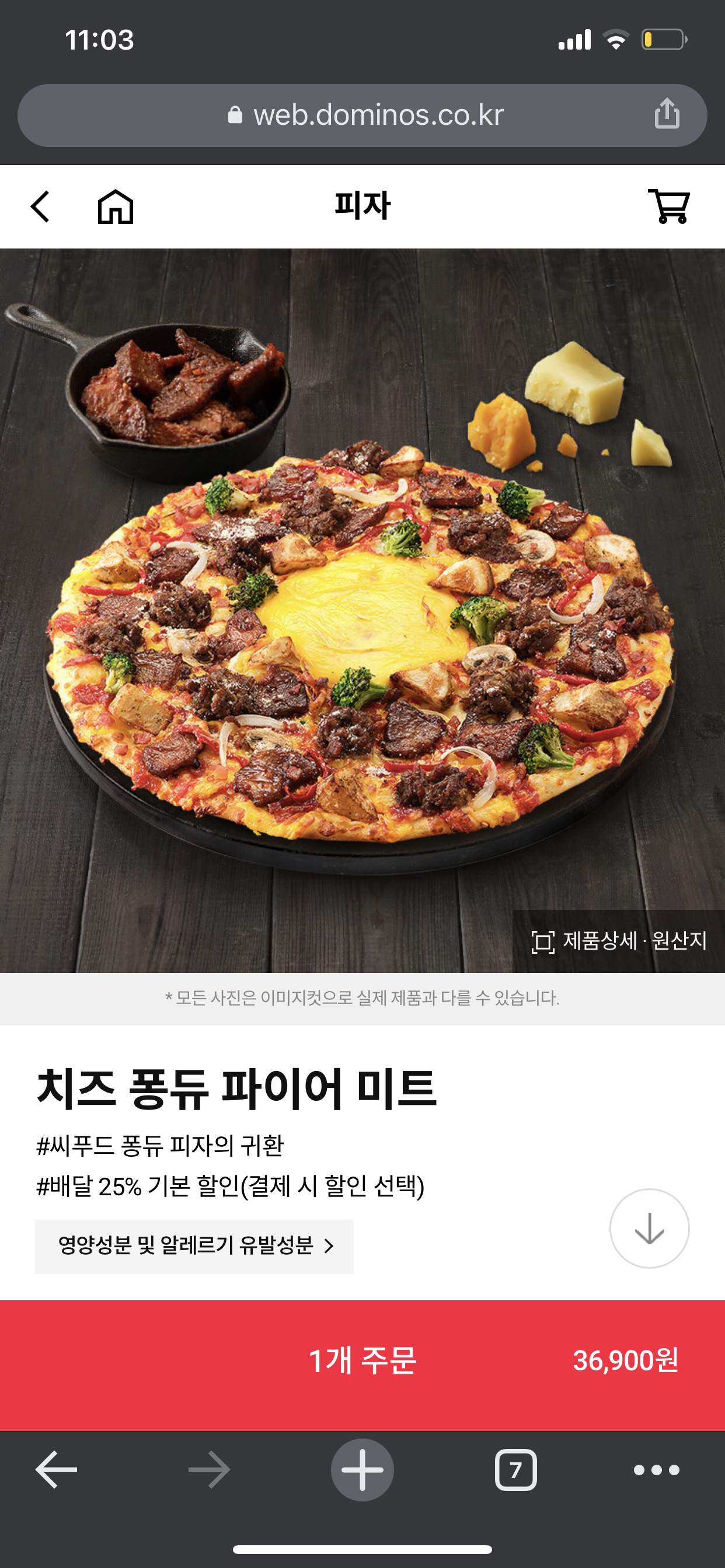 주문 메뉴는 도미노피자 신제품인 "치즈 퐁듀 파이어 미트 피자" 라지 한판을 먹었어요. 솔직히 비싸서 할인 없이는 먹지 않는 메뉴들인데 이런 기회에 한번 먹어봐야 되지 않겠습니까... ㅋㅋ 50% 할인이니 17,000원 정도 할인을 받은 것 같네요.