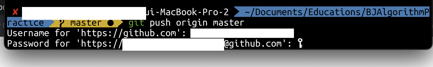 이후 push를 시도하면, 계정 / 비밀번호를 묻습니다. 여기에서 개인 github 계정 이메일과 앞서 복사했던 personal 토큰 비밀번호를 입력해주면, 정상적으로 push가 동작하는 것을 확인 가능합니다.