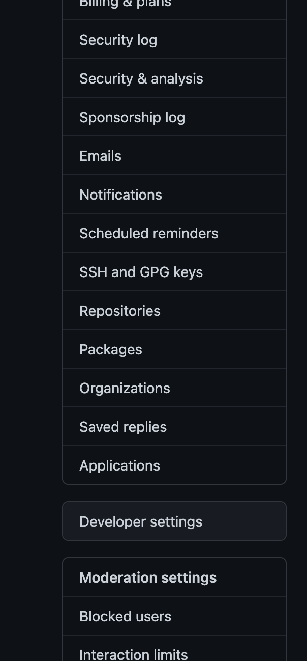 Settings 메뉴 페이지를 들어간 후, 좌측 다양한 메뉴 중 [Developer settings]를 선택해 줍니다.