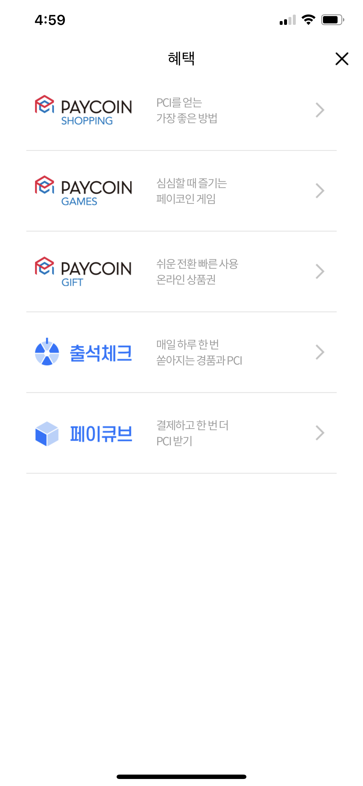 위 화면이 페이코인 shopping 페이지에 진입했을때 모습입니다. 아마도 해당 페이지에서 페코대전 상품 구매페이지가 나올 것으로 보입니다.