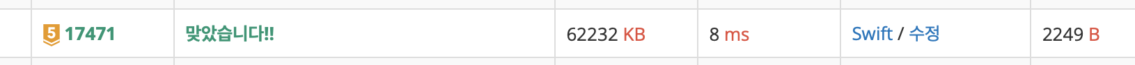 '알고리즘 정보 > Swift 알고리즘' 카테고리의 다른 글