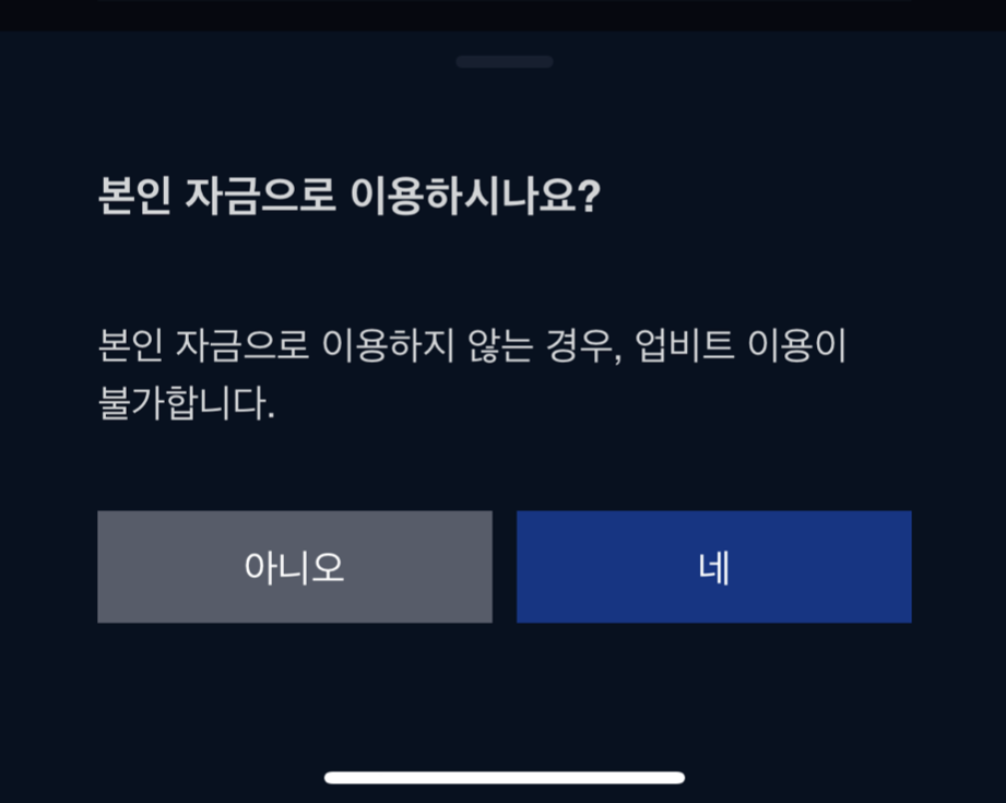 업비트에서 정상적인 거래를 지속 진행하기 위해서는 업비트 고객 확인 시스템을 통해 고객확인절차를 마쳐야 합니다.