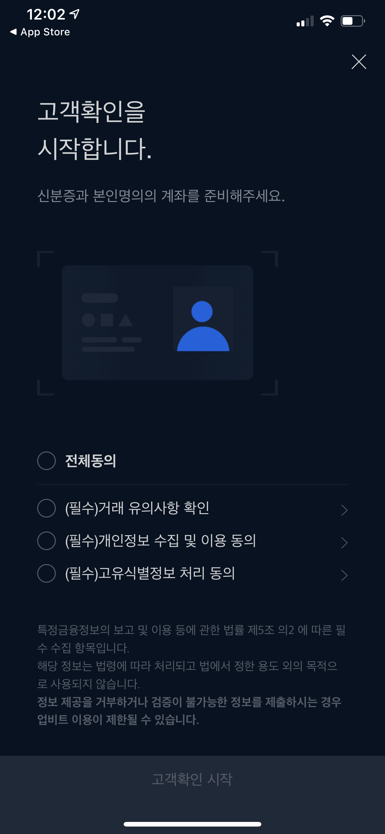 코인 가상화폐 특금법으로 인해 고객확인 절차가 생겨서 번거로울까 걱정을 했지만, 다행히 그렇게 복잡한 절차는 아니었습니다. 관련해서 질문이나 의견 환영합니다. 앱 최신버전 업데이트 진행하시고, 고객확인 절차 잘 마치시길 바랍니다.