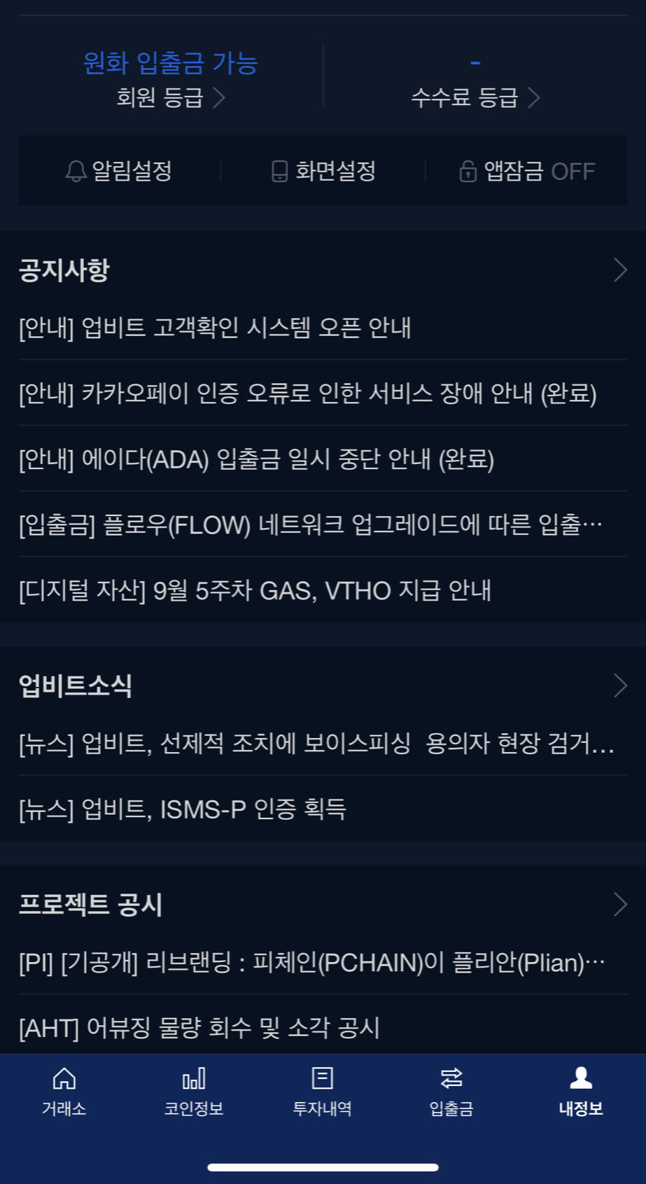 그렇게 간단한 고객확인 절차를 마치면, 정상적으로 업비트 앱을 사용하실 수 있습니다.