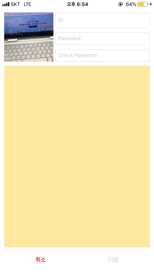 위 이미지를 보시면 좌측 상단에 이미지뷰 ImageView가 있는것을 보실 수 있습니다. 해당 이미지뷰를 터치할때, ImagePickerViewController를 생성시키는 사례입니다. 이미지 뷰를 선택 하면 ImagePickerViewController가 열리게 됩니다. 그후에는 이미지를 선택해서 상황에 따라 편집도 가능하지요.
