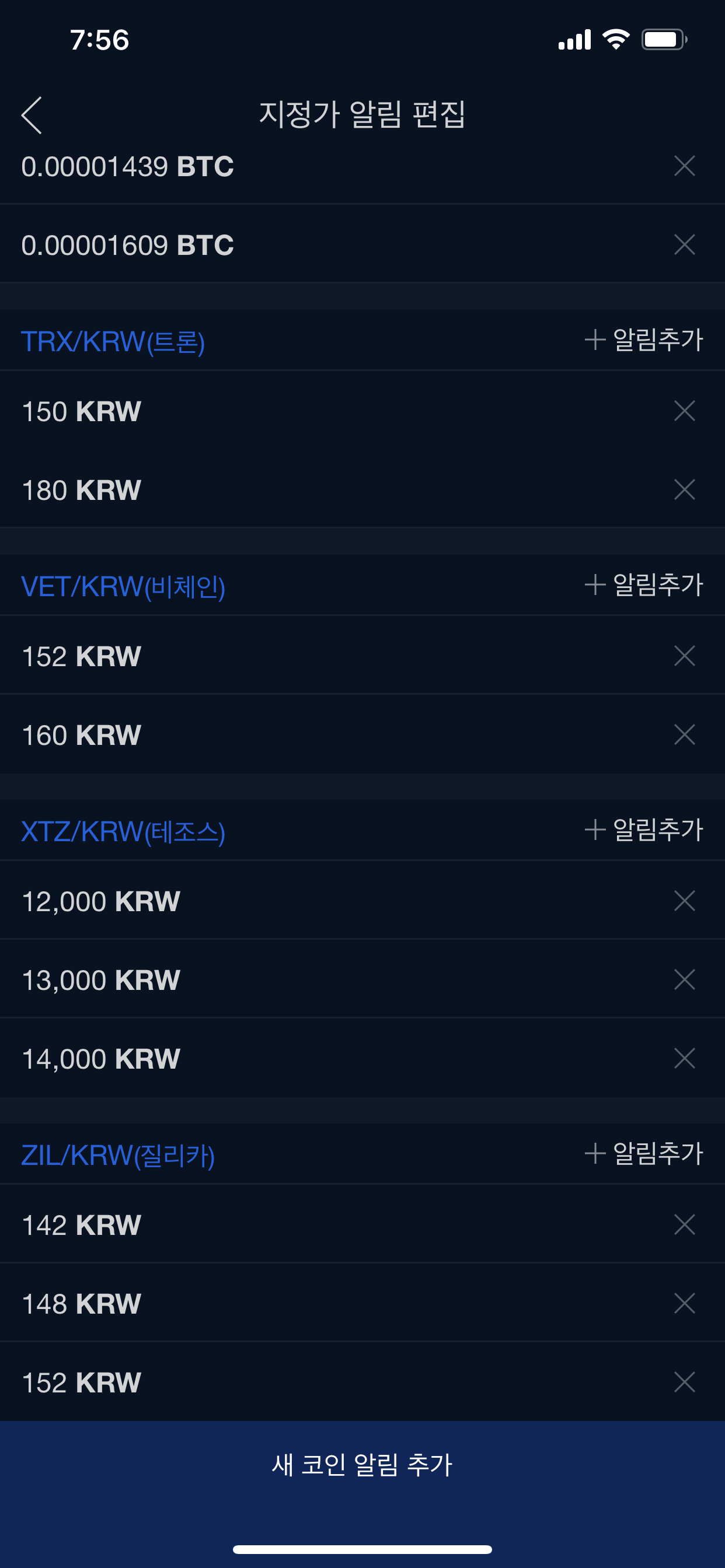 주의할 사항은 모든 코인의 가격알람 설정은 최대 30개까지만 등록이 가능합니다. 그러므로, 꼭 필요한 알람설정만 하시는것이 알람기능 활용을 할때 있어서 좋겠습니다.