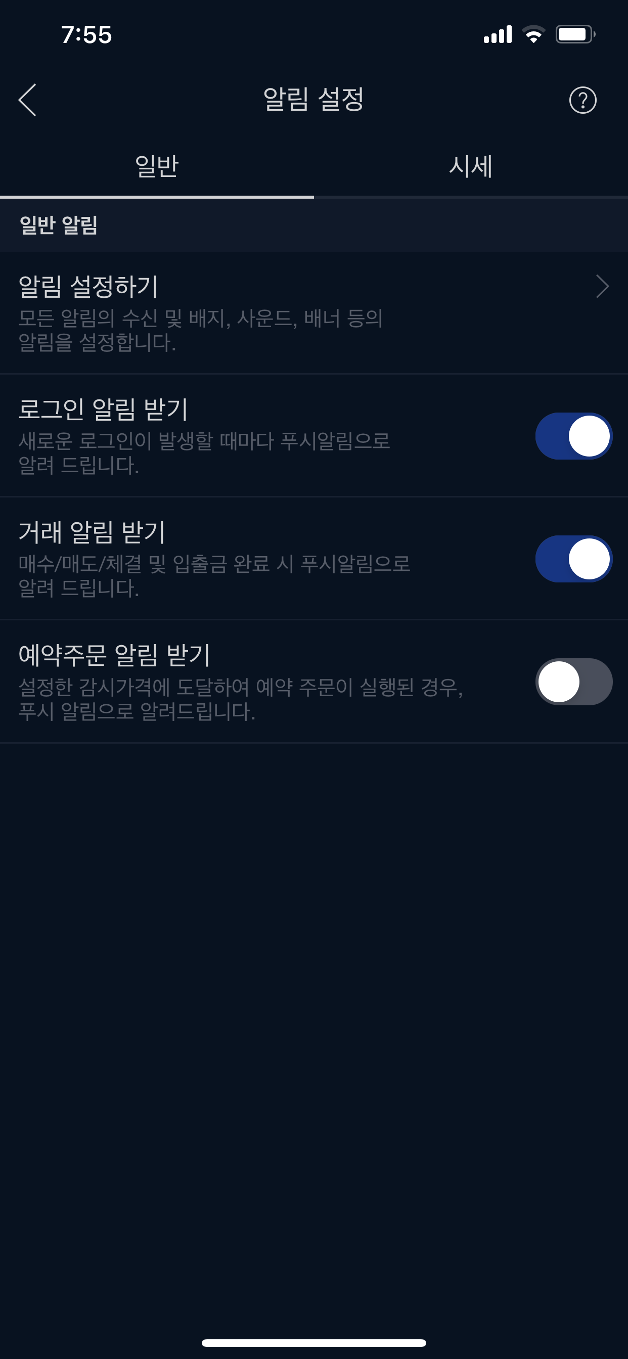 다시 본론으로 가서, 설정했던 전체 알람목록을 확인하기 위해 [시세] 메뉴를 들어가줍니다.