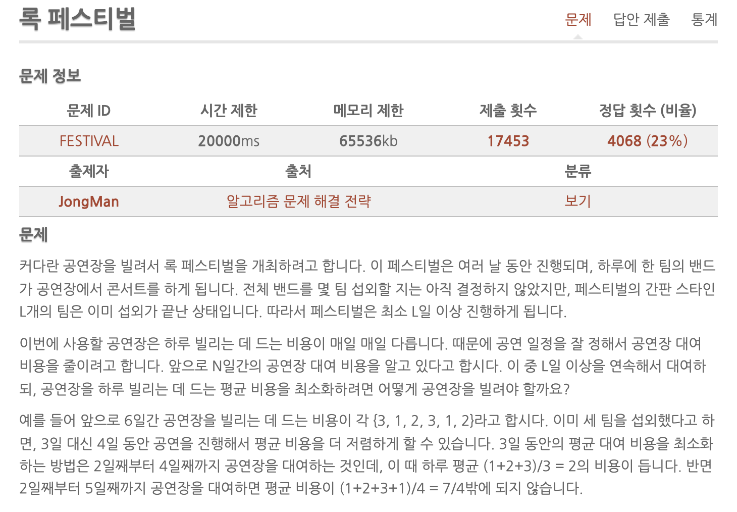 종만북 알고스팟 기초문제, 록 페스티벌 설명