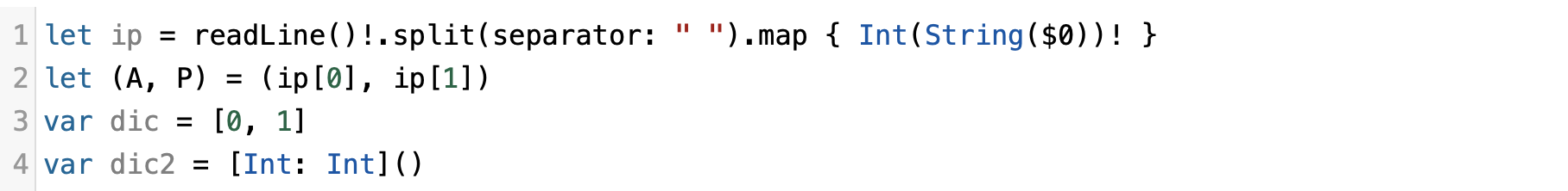 let ip = readLine()!.split(separator: " ").map { Int(String($0))! }