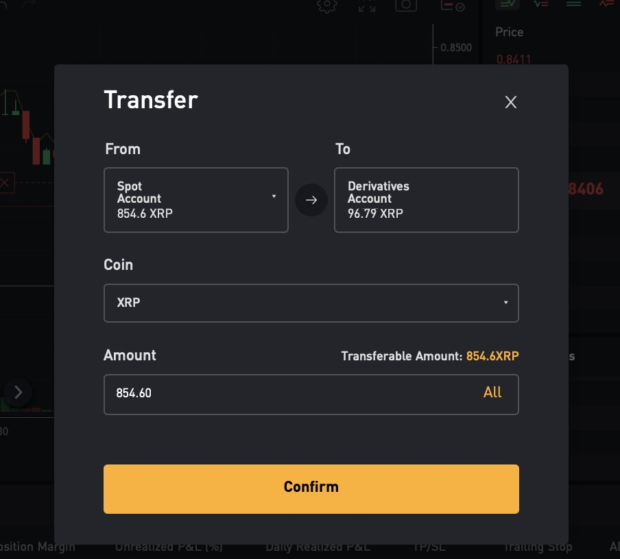 위와 같은 팝업이 나오면, 앞서 입금받은 리플코인을 옮기기 위해, 하단 All을 누른 후, Confirm 버튼을 눌러줍니다.
