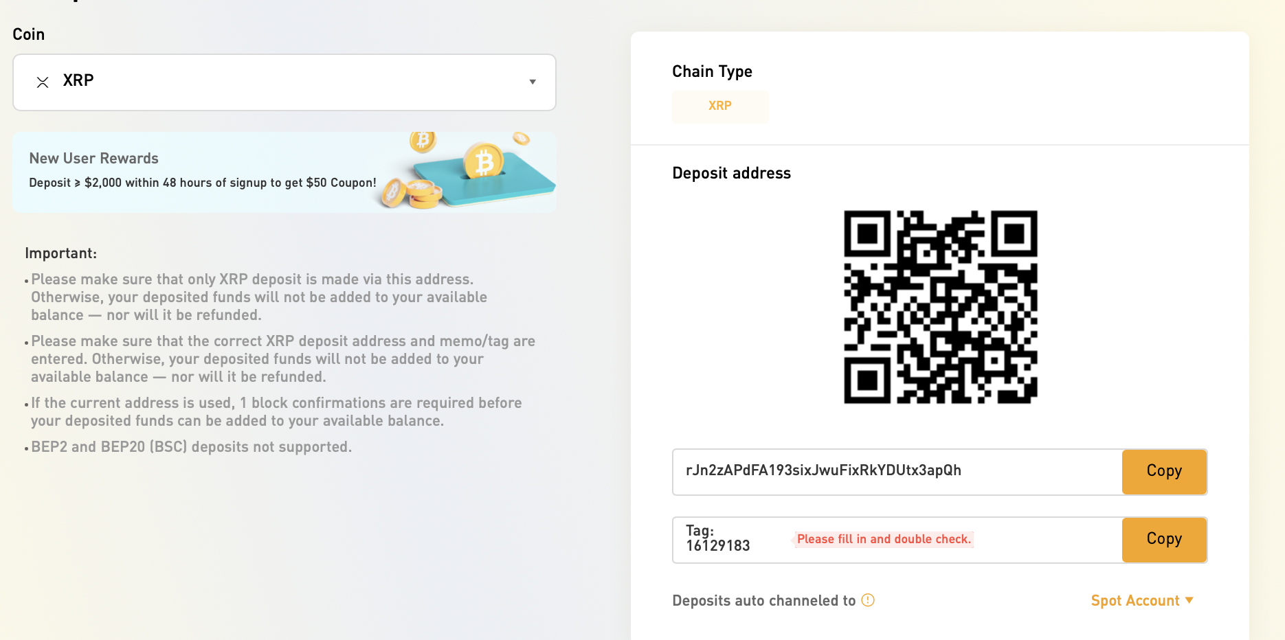 코인선물 햇징 사용 전, 해외거래소에 리플코인 소액 입금하기