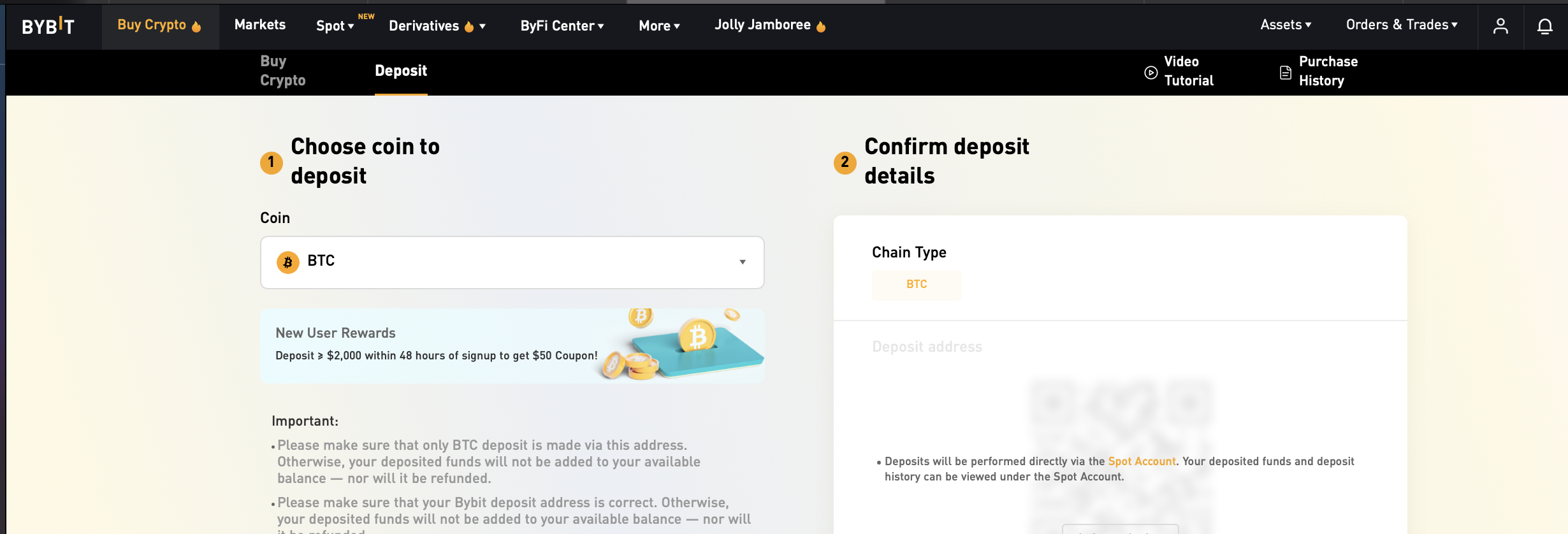 먼저, 해외거래소 자산입금을 위해서는 입금주소를 확인해야합니다. 바이비트의 Assets > Deposit > XRP를 선택해서 입금주소를 확인합니다.