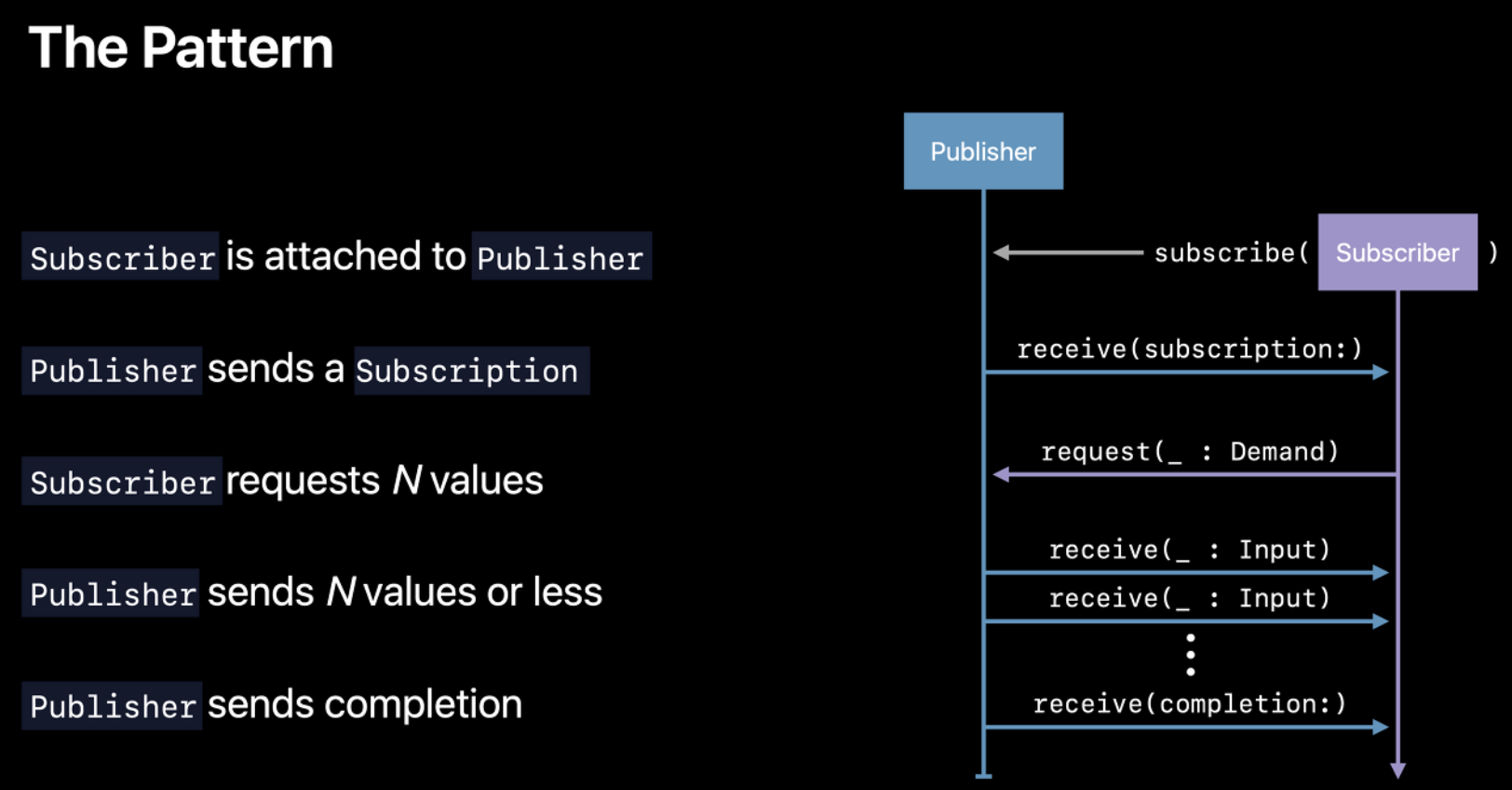 4) Subscriber가 Subscription을 받으면, 이후 Publisher에게 값을 달라고 내부적으로 요청합니다. (request(_:))