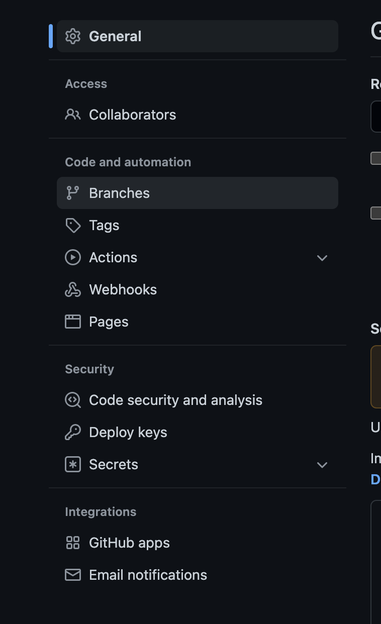 좌측 목록에 Branches 메뉴를 이어서 선택해주세요.