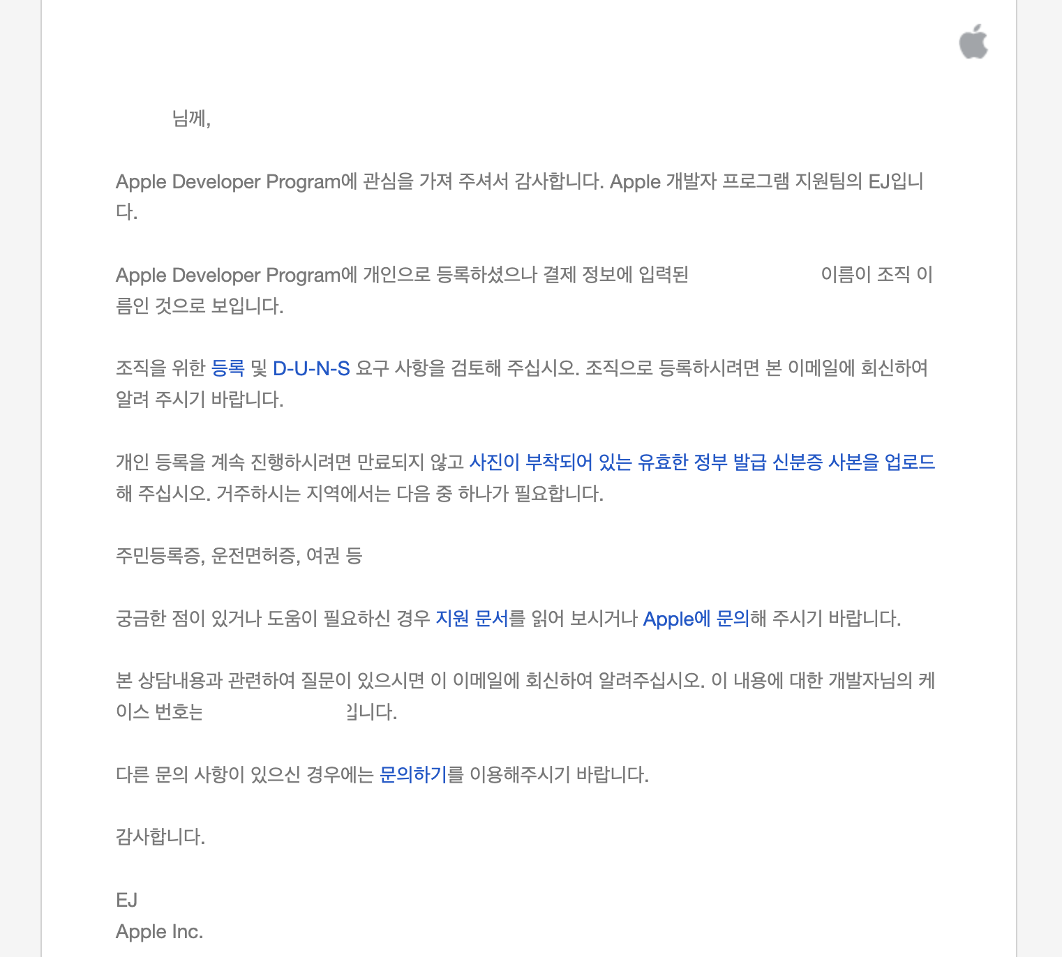 지금까지 iOS 앱 앱스토어 배포를 위해 애플 개발자 프로그램을 결제하고 승인받는 과정을 알아보았습니다. 인적사항을 잘 적고 결제하셔서 문제없이 앱스토어에 앱을 올리 실 수 있기를 응원합니다. 관련 질문, 의견 언제든 댓글 남겨주세요. 감사합니다.