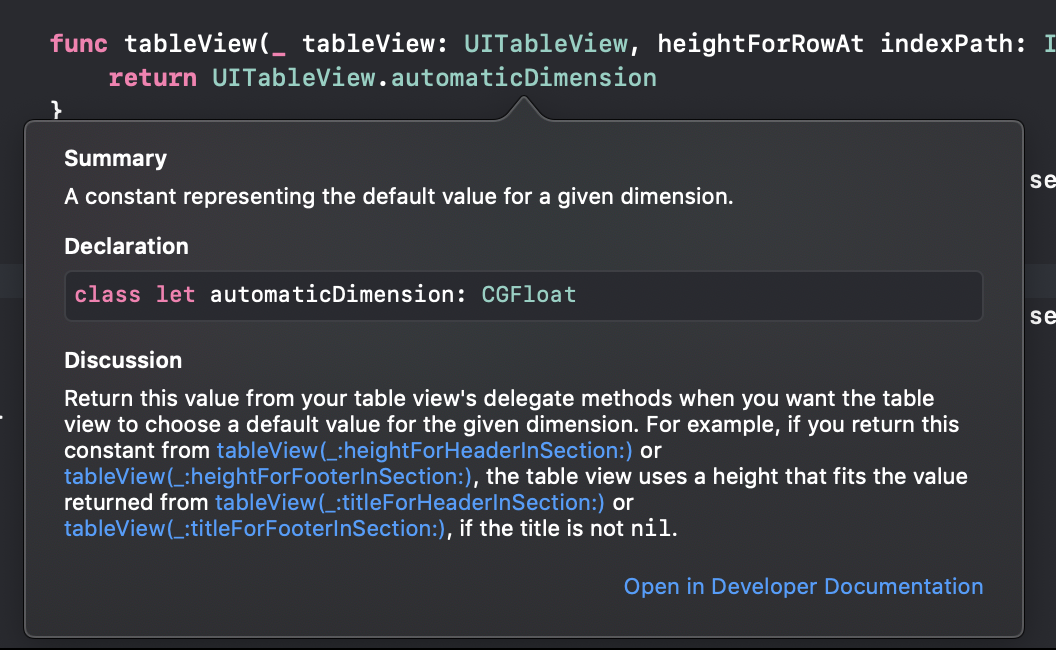 살짝 automaticDimension에 커서를 대고 option+클릭 해보겠습니다!