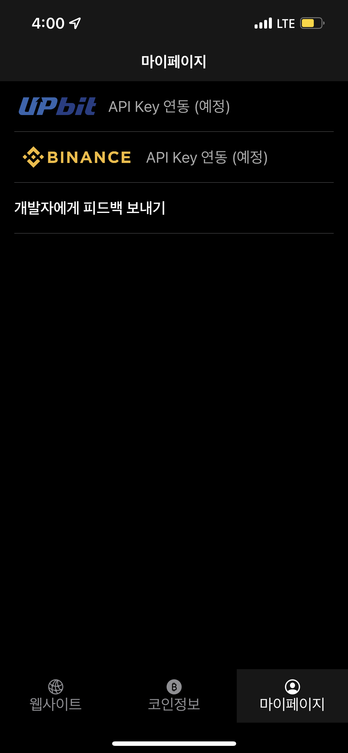 현재 마이페이지 화면에서는 개발자 피드백 기능만 사용이 가능합니다. 이를 통해 불편한 점이나 개선사항 등 공유해주시면 잘 참고하겠습니다. 🤗