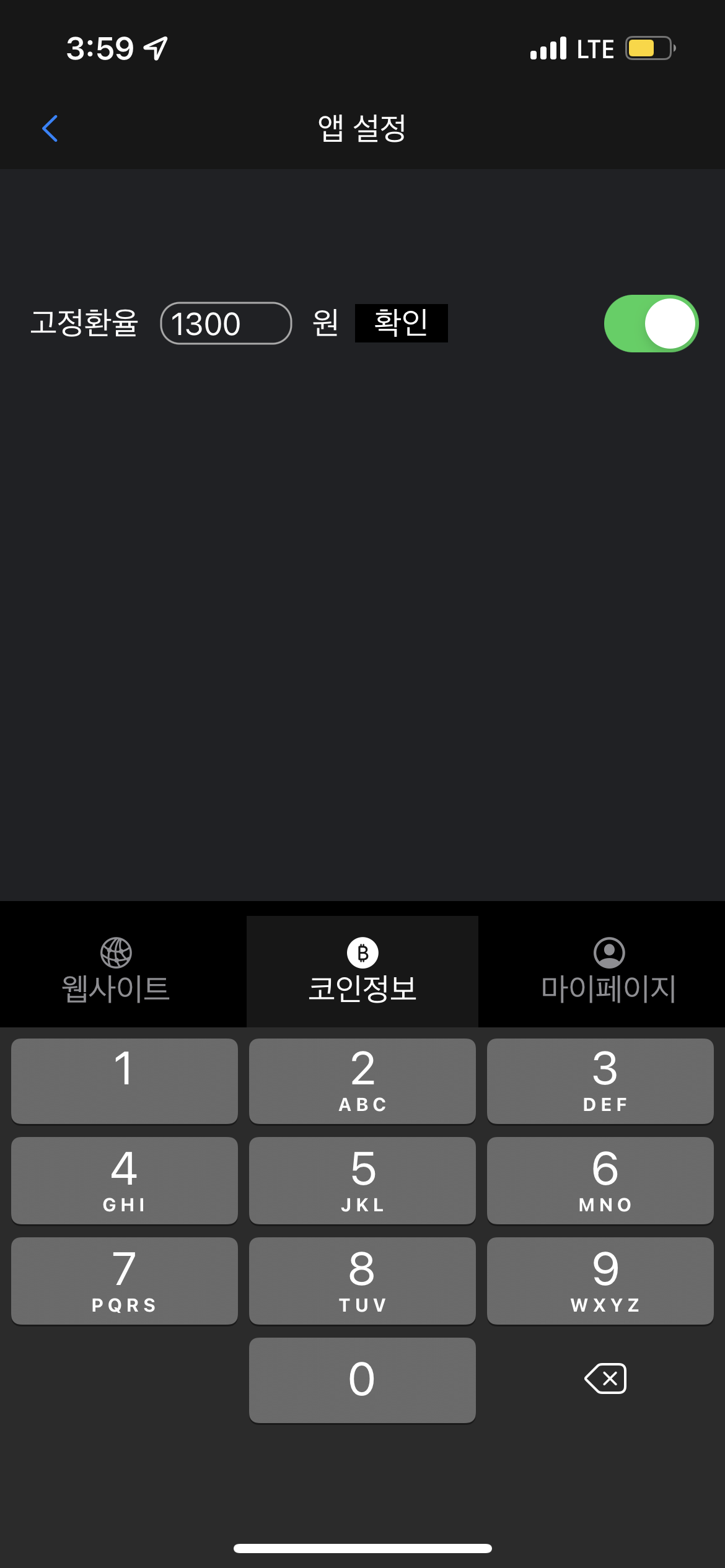 * 상단 코인종목 명 우측의 빨간 불이 들어오면, 달러환율 연동이 잘 되지 않는 상태이며 이 경우에는 강제로 고정환율 옵션이 활성화되는 점 앱 활용에 참고 부탁드립니다.