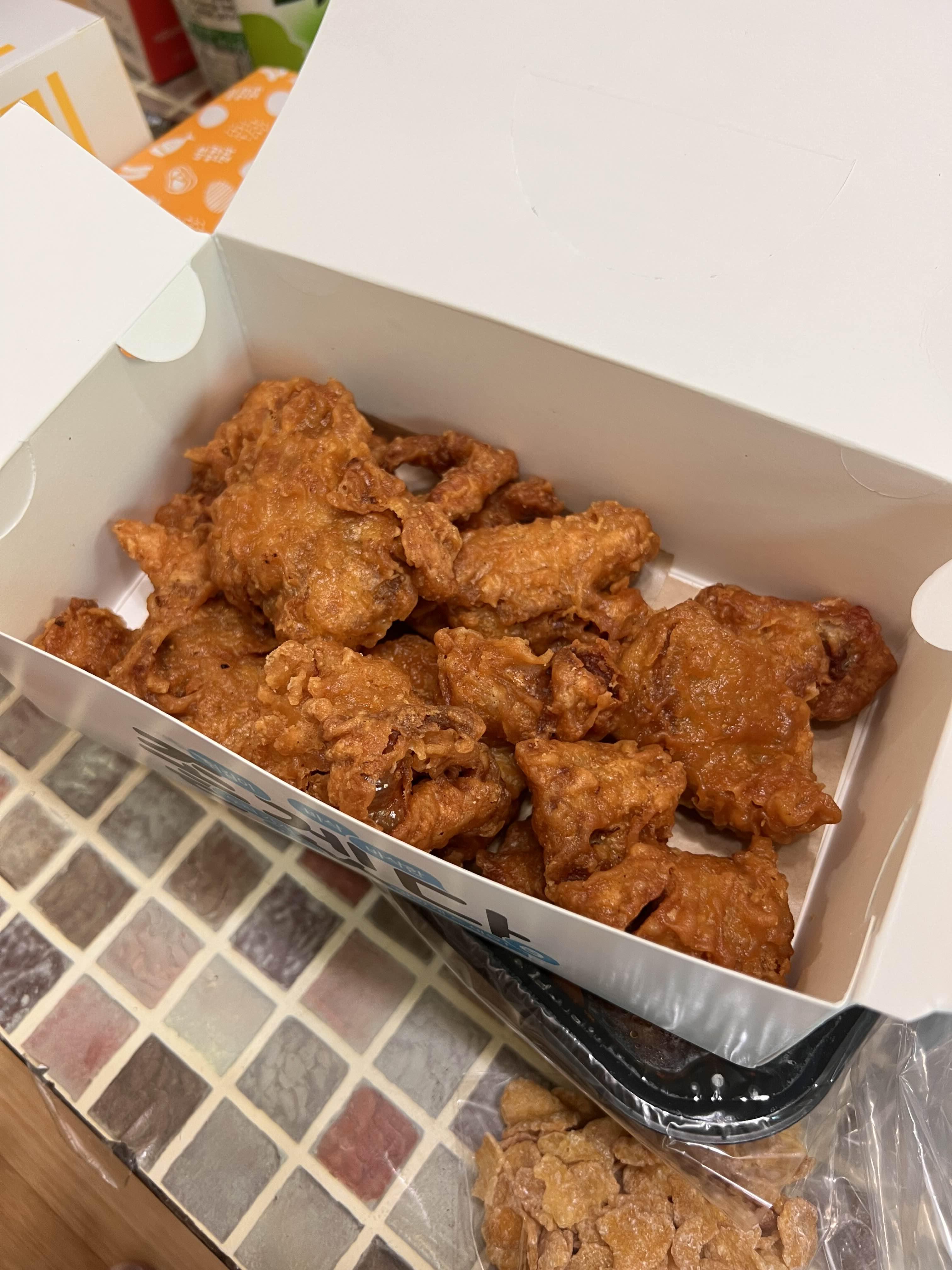 순살치킨도 시켰는데, 저는 담백 바삭해서 맛있게 먹었어요. 반면 동생은 튀김옷이 약간 두터운건 아쉽다고 하더라구요. 순살치킨을 먹을떄 이빨에 힘이 좀 많이 들어간다고 했어요.