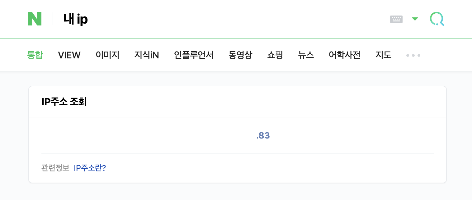 Open API 키 사용이 가능한 IP를 입력해주셔야 합니다. 본인이 주로 사용하는 환경에서 네이버 > "내 ip" 검색 > 본인의 ip를 확인 후 IP주소를 등록해주세요. IP는 ',' 를 구분자로 여러개(최대 5개까지) 등록이 가능합니다. 이후 하단 "Open API Key 발급받기" 버튼을 선택해주세요.