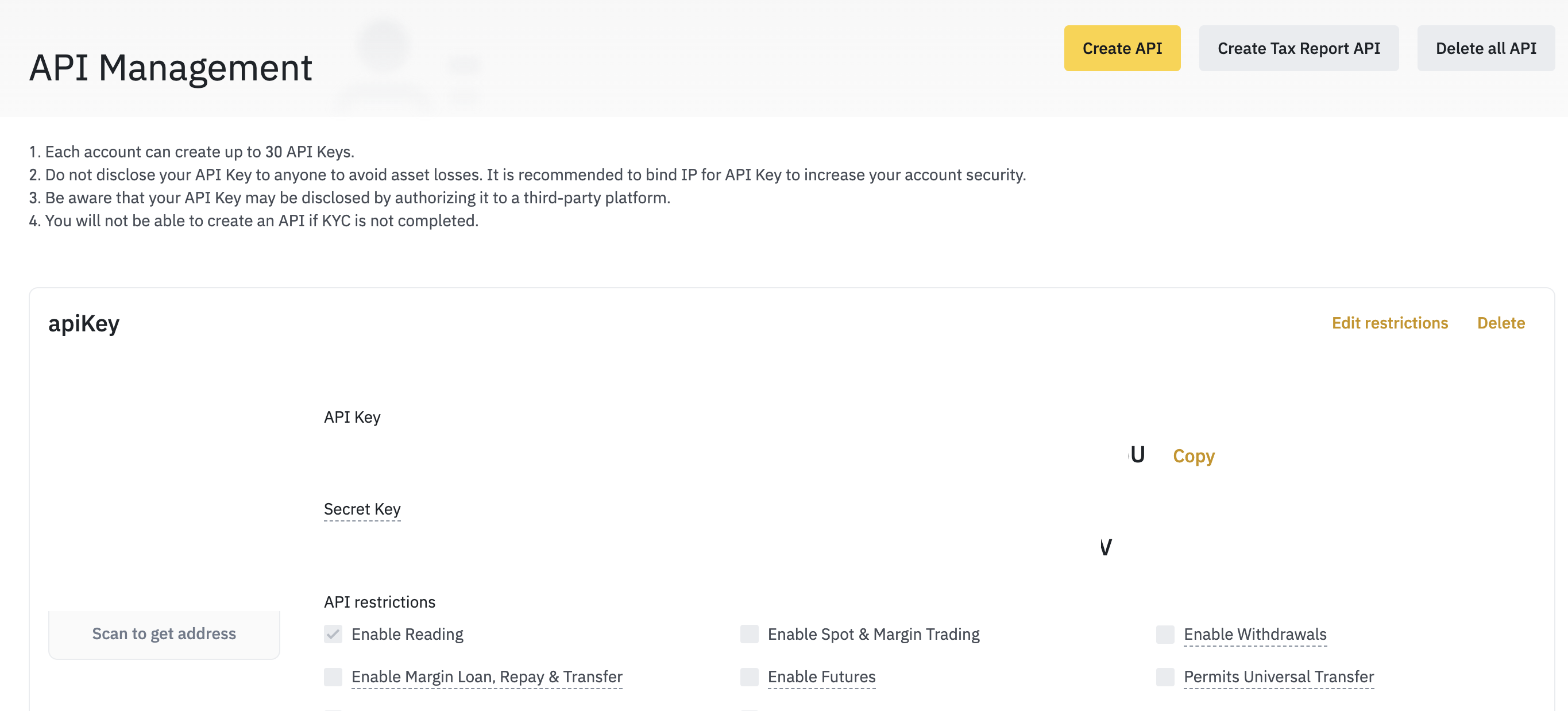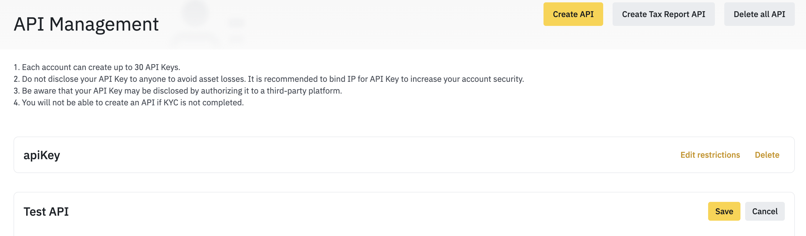3. 바이낸스 이외 타 플랫폼에서 API 키가 공개되는것을 주의하셔야합니다.