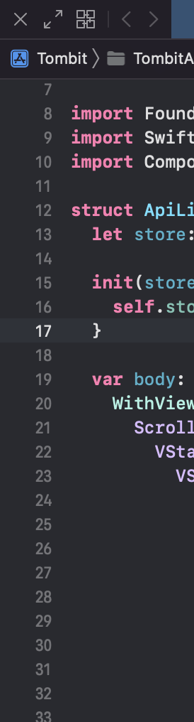 위와 같이 Xcode 창이 있는데 어떻게 해도 한 화면에 다수의 editor를 띄울 수 없는 상황입니다. 이때 확인해봐야하는 설정 사항을 알아보겠습니다. 먼저 editr 좌상단을 확인해주세요.