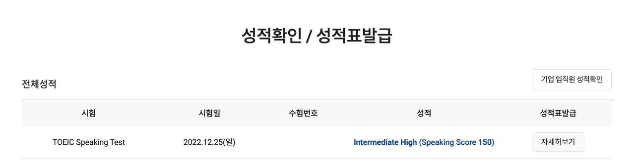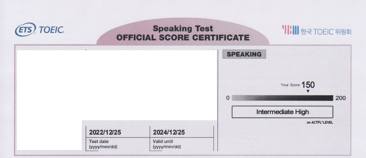 그렇게 해커스 토익스피킹 환급반을 신청했고, 12월 말, 약 1달만에 IH, 150점을 달성할 수 있었습니다.