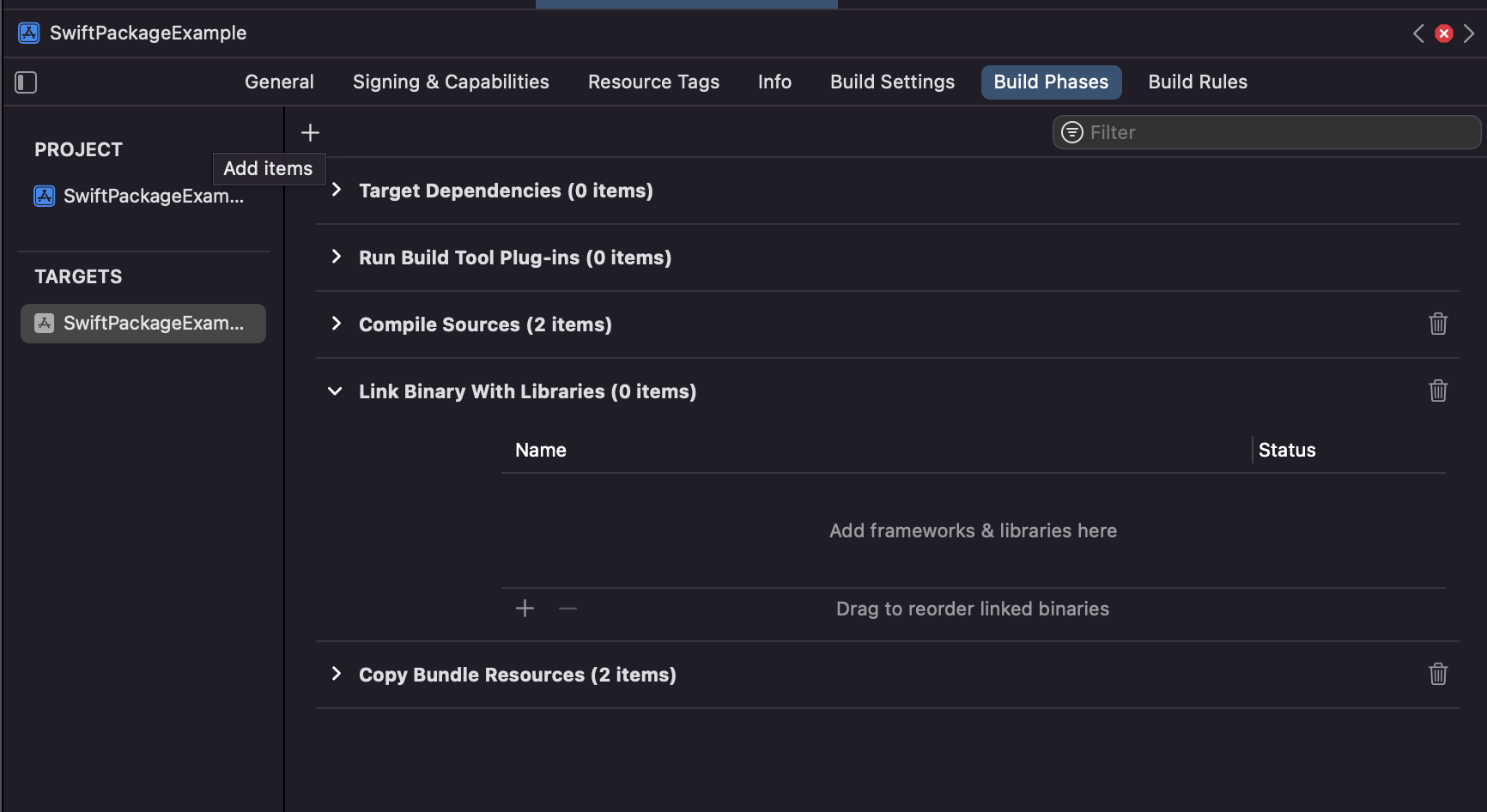앱 프로젝트에서 참조하고 있는 MyPackage Swift Package가 목록에 보이는 것을 확인할 수 있습니다. 패키지를 선택해서 추가해줍니다.