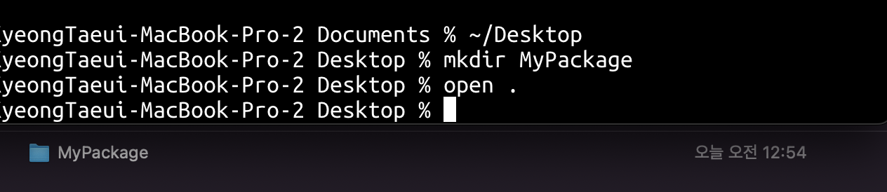 이번 포스팅에서는 임의로 바탕화면에 폴더를 만든 후, 패키지를 생성해보겠습니다. 위와 같이 명령어를 입력해줍니다.