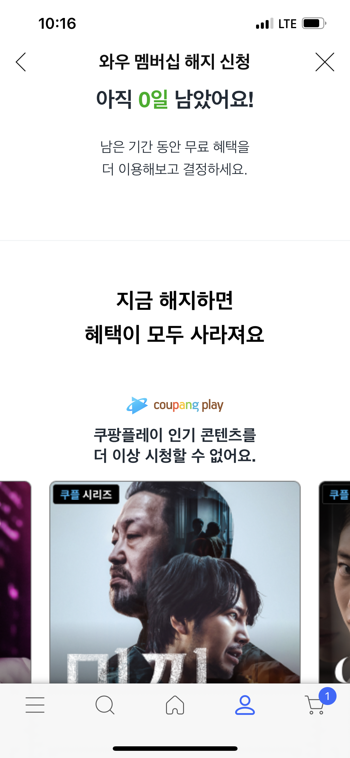 끈질긴 쿠팡앱입니다. 해지를 못하게 방해를 하지만, 우리는 해지를 해야합니다.