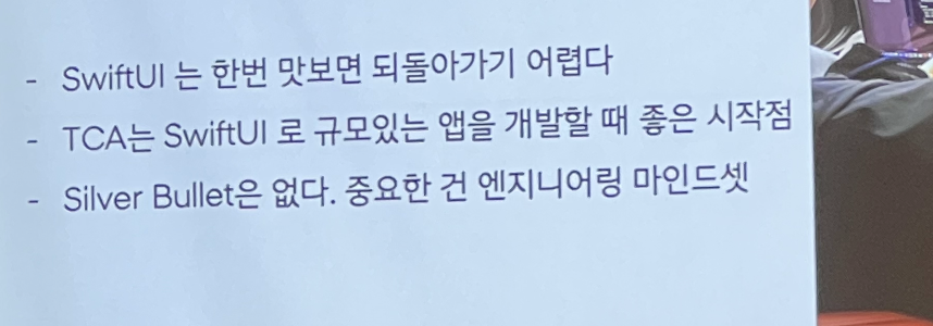 현대자동차에서는 TCA, SwiftUI 개발기를 발표했는데요. 저도 현업, 사이드프로젝트에서 TCA, SwiftUI를 사용해본 입장에서 반신반의를 했습니다... ㅋㅋㅋㅋㅋ