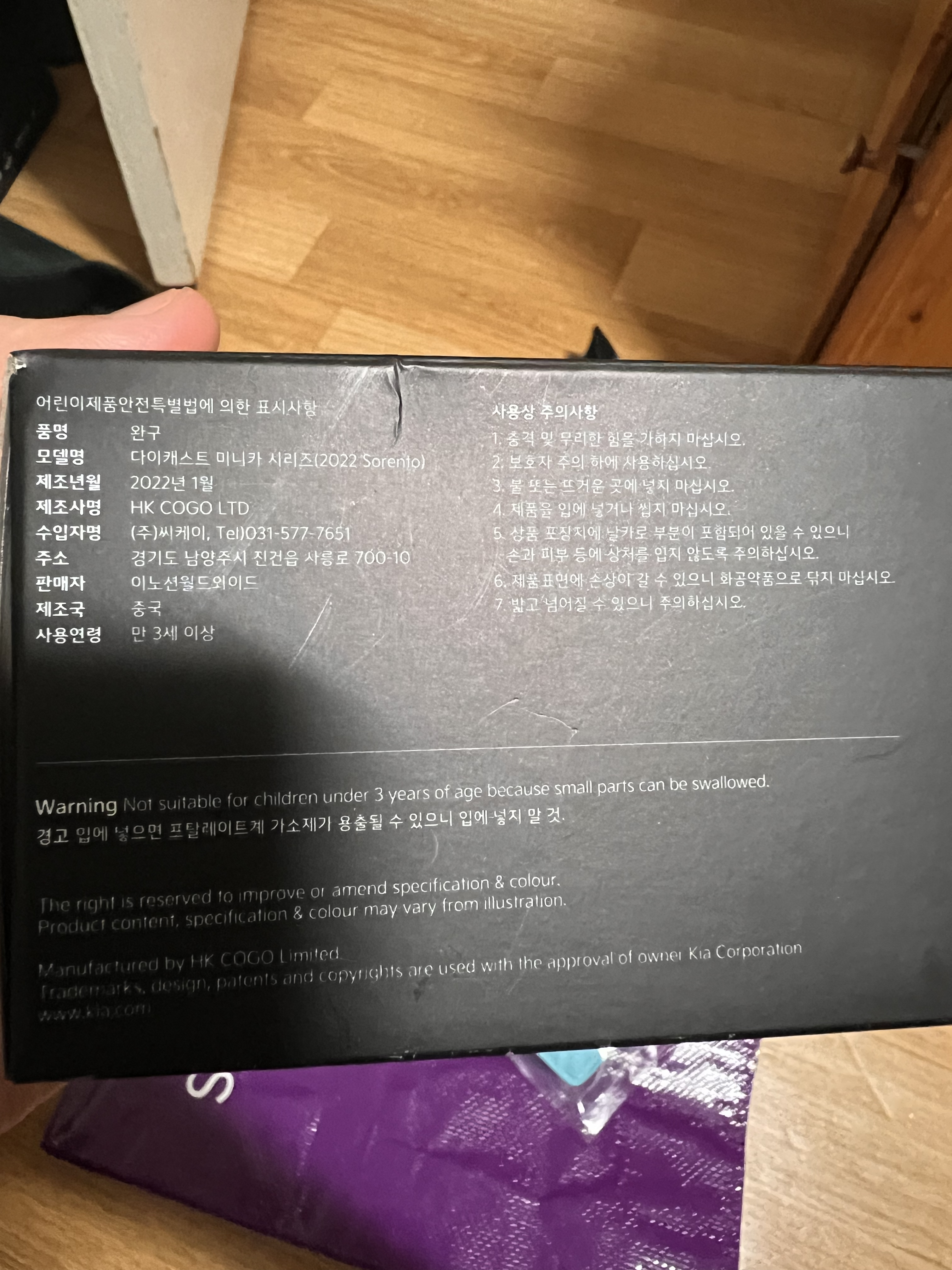 이건 아까 말씀드린 기아의 소렌토 차량 장난감이에요. 현대자동차 모델도 있었는데 저는 기아 차량을 받았어요.