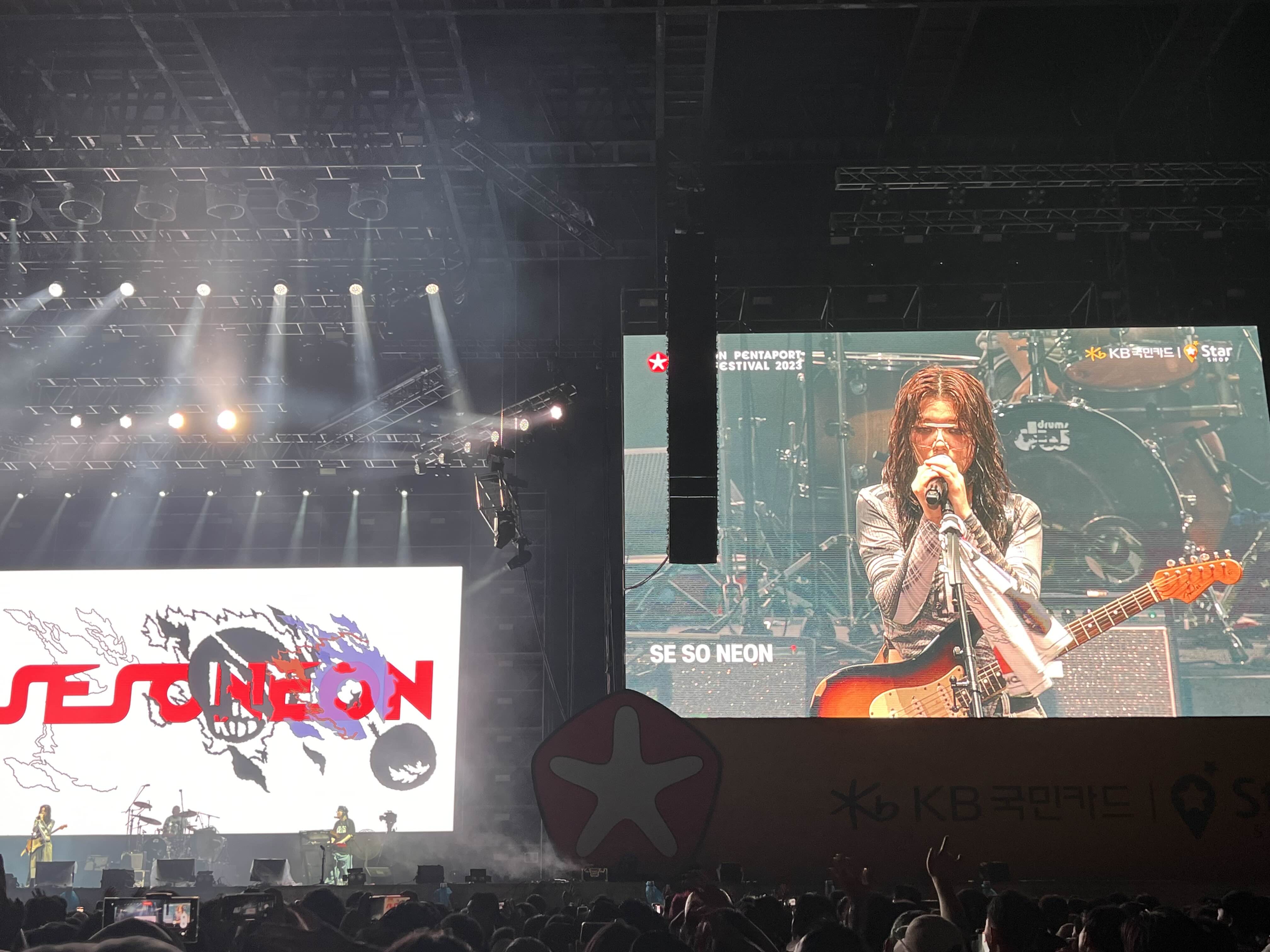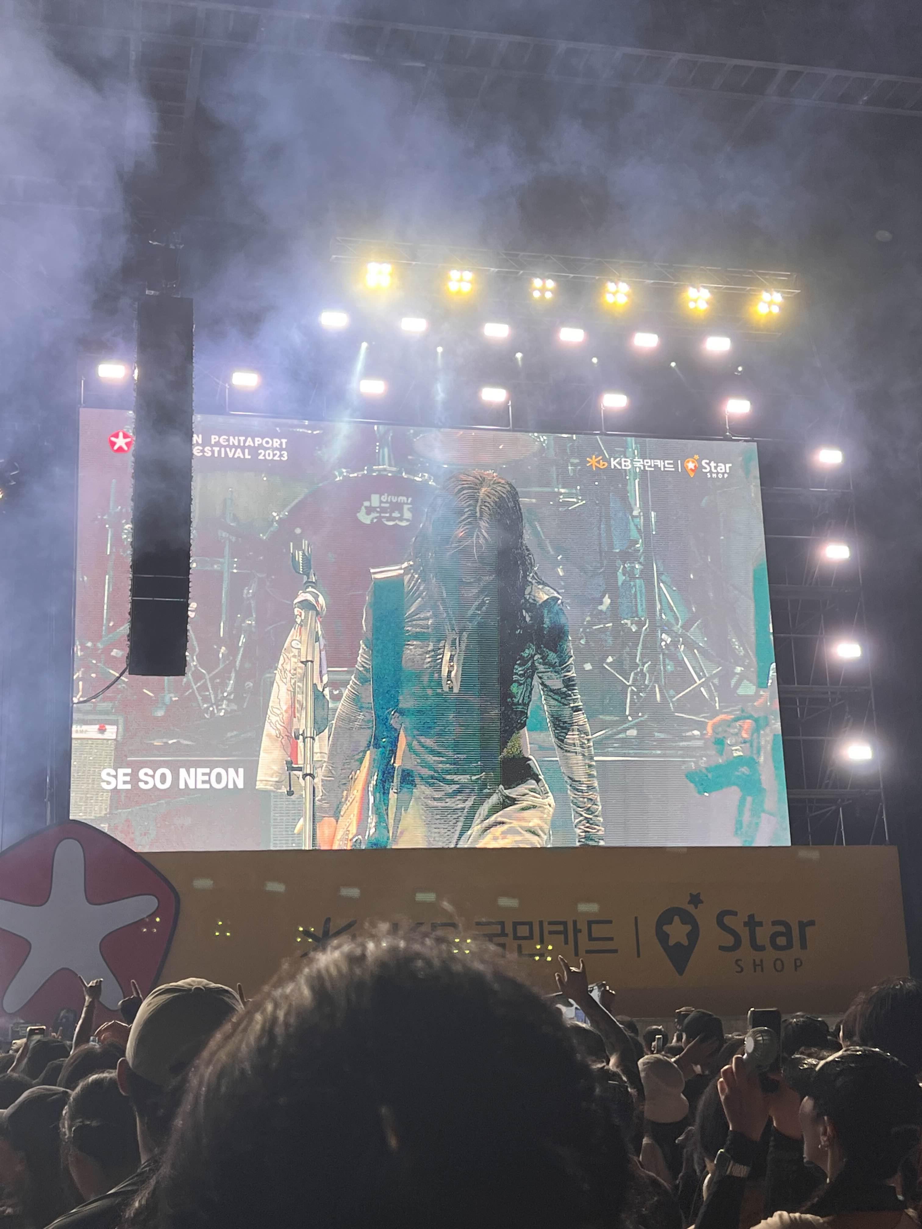 공연장 좌 / 우에는 위와 같이 큰 스크린이 있어서, 공연장 분위기와 락 그룹들의 모습을 어디서든 볼 수 있게 해두었어요. 여기에 가수에 대한 정보나 가사도 나오면 참 좋을텐데 싶더라구요. 욕심일까요?...