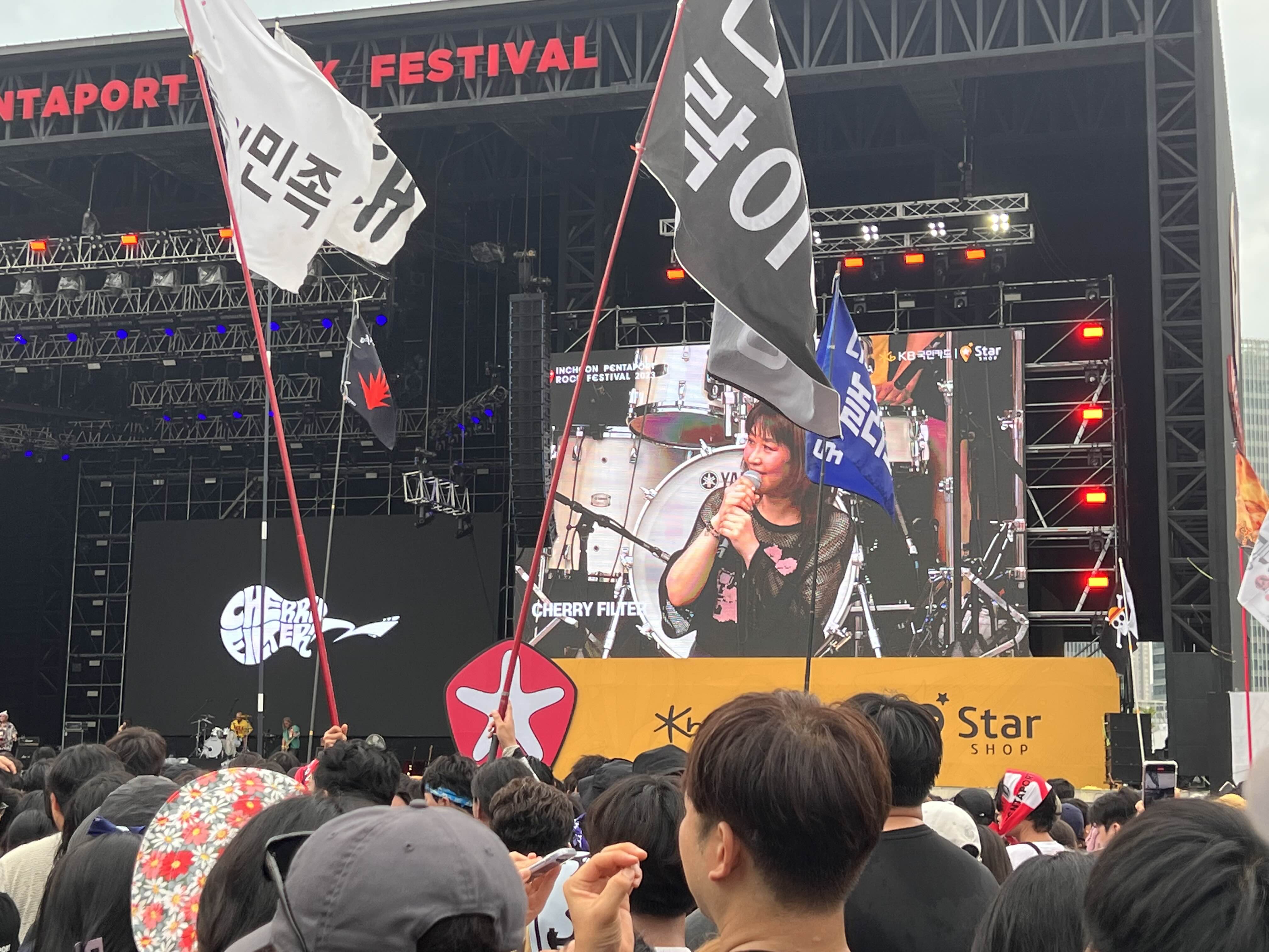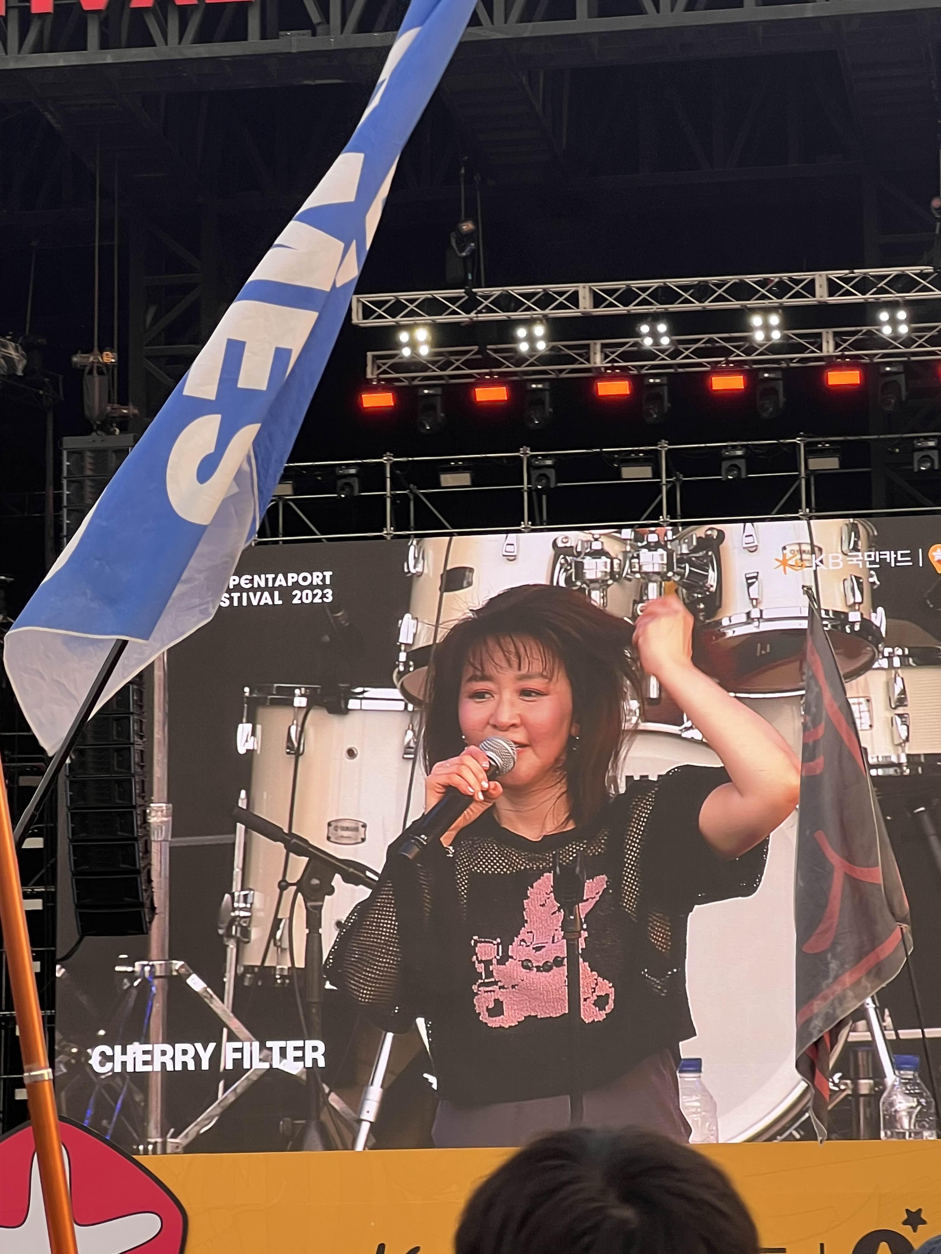 제가 락페스티벌 와서 유일하게 이미 알고 있었던 분... 체리필터에요. 마음은 뉴진스인 체리필터 누님... 그 멘트에 팬들이 단체로 "뉴-진스~" 하는데 너무 재밌어서 저도 따라서 외쳤어요.