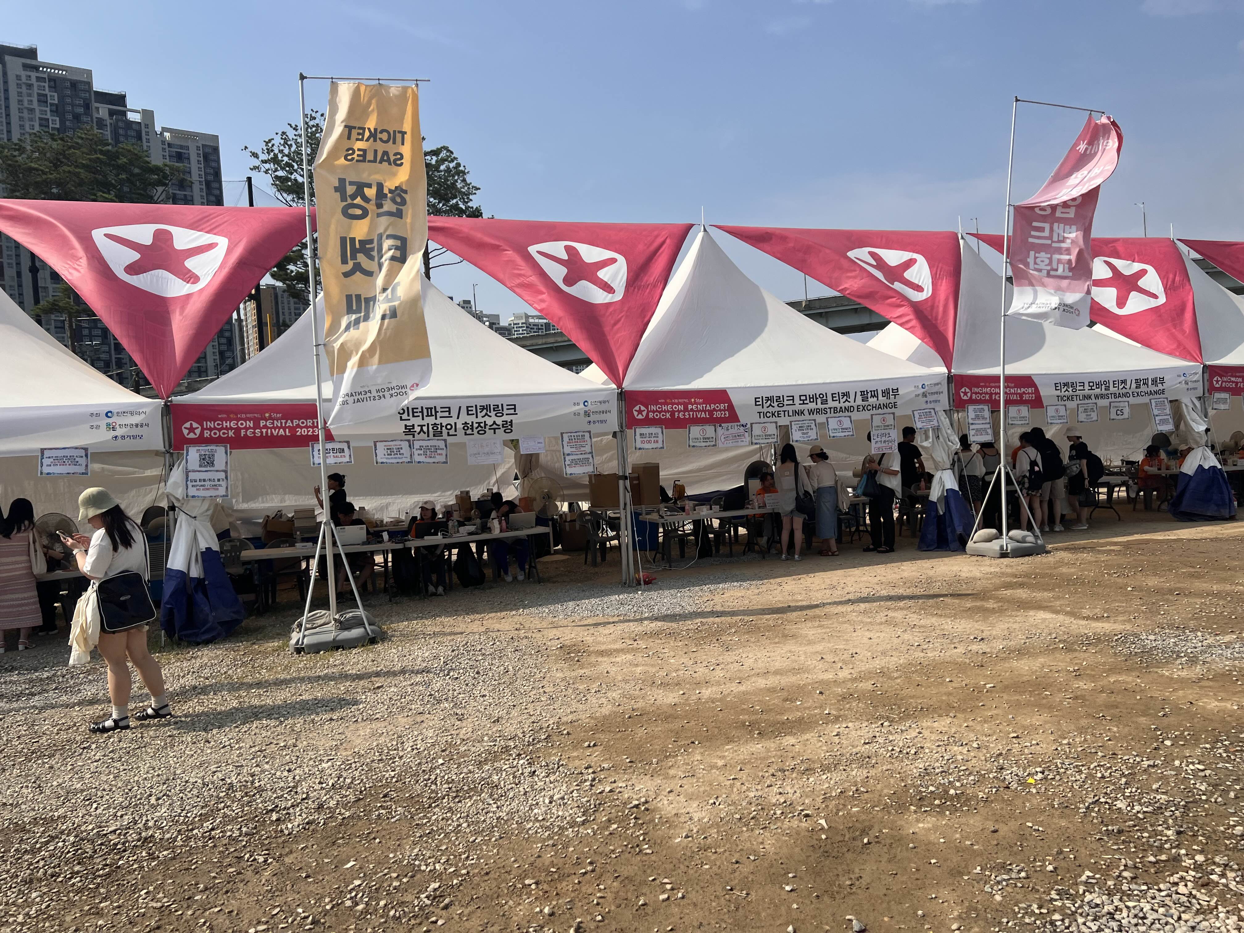 여기에 팔찌를 배부하고, 티겟을 처리하는 부스가 있구요. 여기에서 얼마 안가서 바로 공연장이 있었어요. 크게 2개 공연장이 돌아가면서 하는 방식이었고, 한쪽이 공연을 시작하면 한쪽은 대기시간을 갖는 방식이었어요.