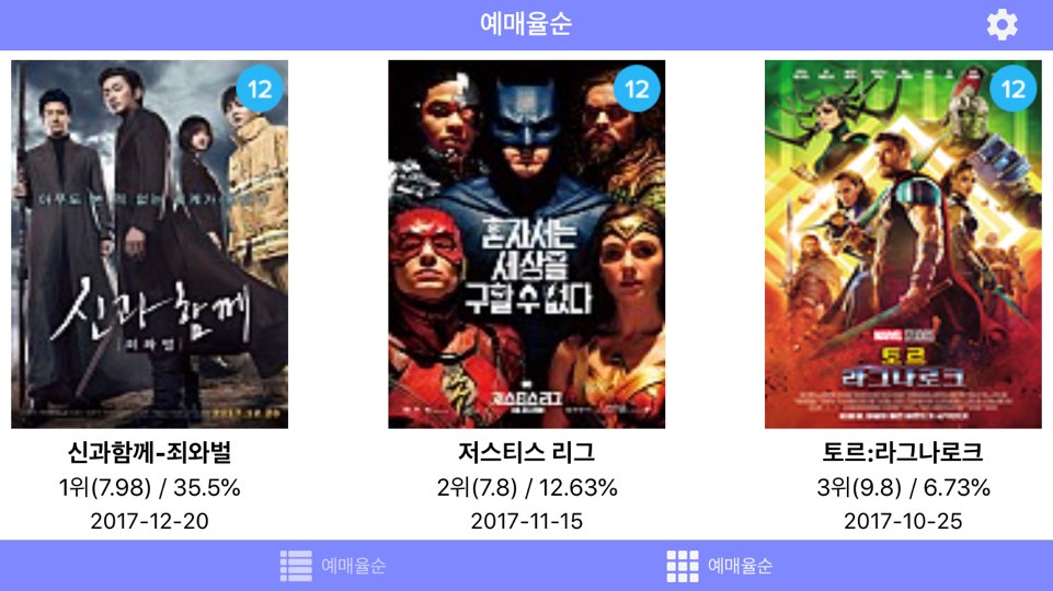 위 모습은 현재 제가 수행중인 5번째 프로젝트, "BoxOffice" 앱인데요. 지금은 화면회전을 안한상태라 크게 문제가 없어 보입니다. 그런데 화면회전을 한번 해보겠습니다!