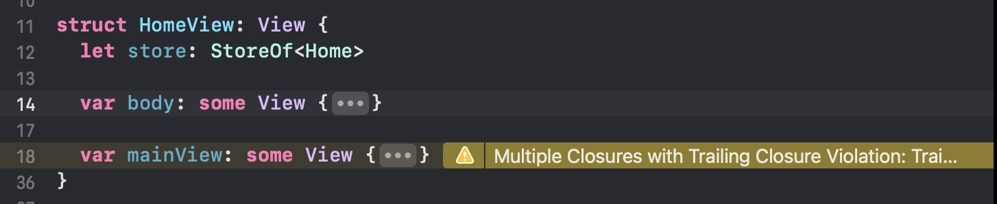 - StoreOf<Feature>는 Store<Feature.State, Feature.Action>를 간단하게 표현하는 별명타입입니다.