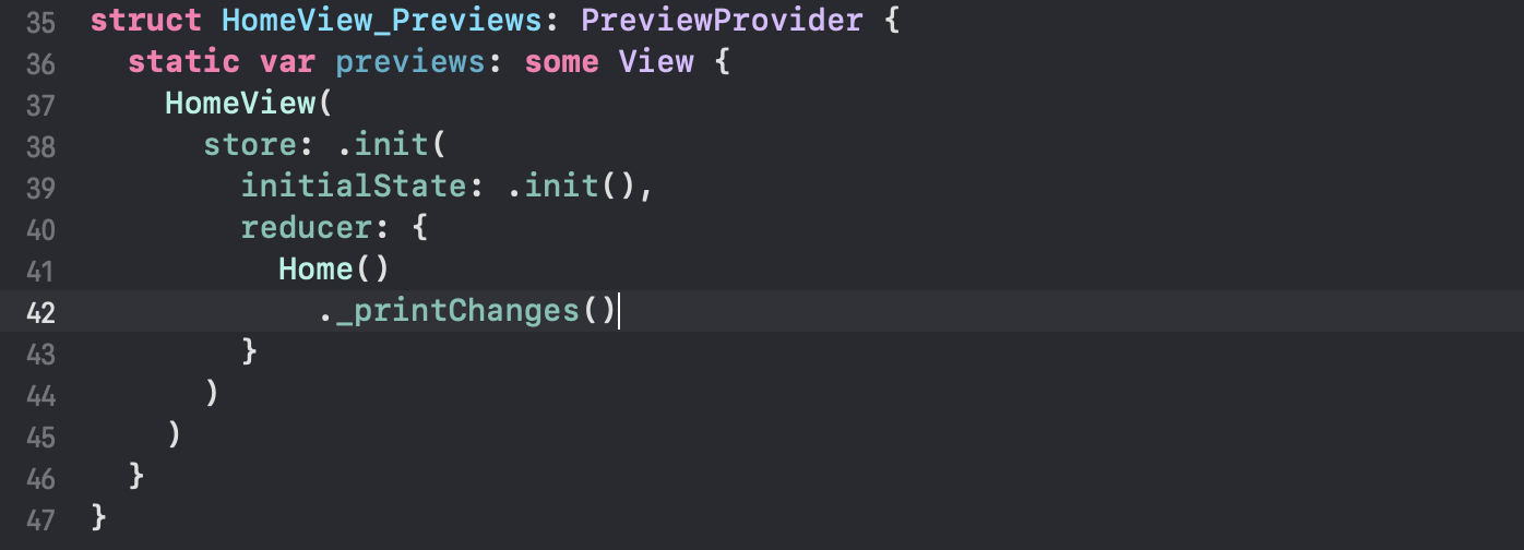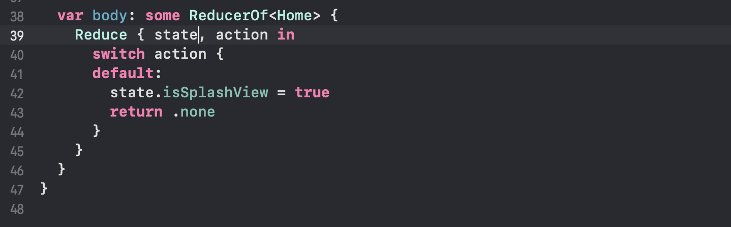 이때 ViewStore의 observe 인자를 통해서 Reducer 특정 state만 감지하도록 할 수도 있습니다. 위의 코드는 observe parameter를 통해 해당 Reducer의 State 전체를 감지하도록 설정한 코드입니다.