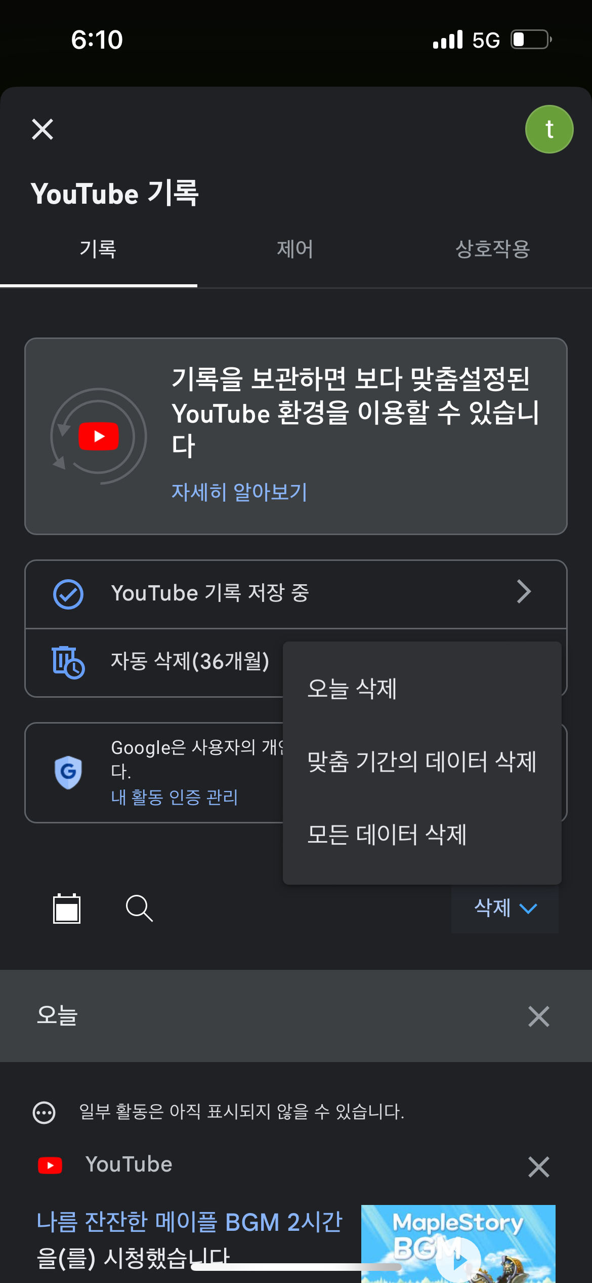 Youtube 유튜브 팁, 시청한 영상 및 검색기록 간단하게 삭제하는방법