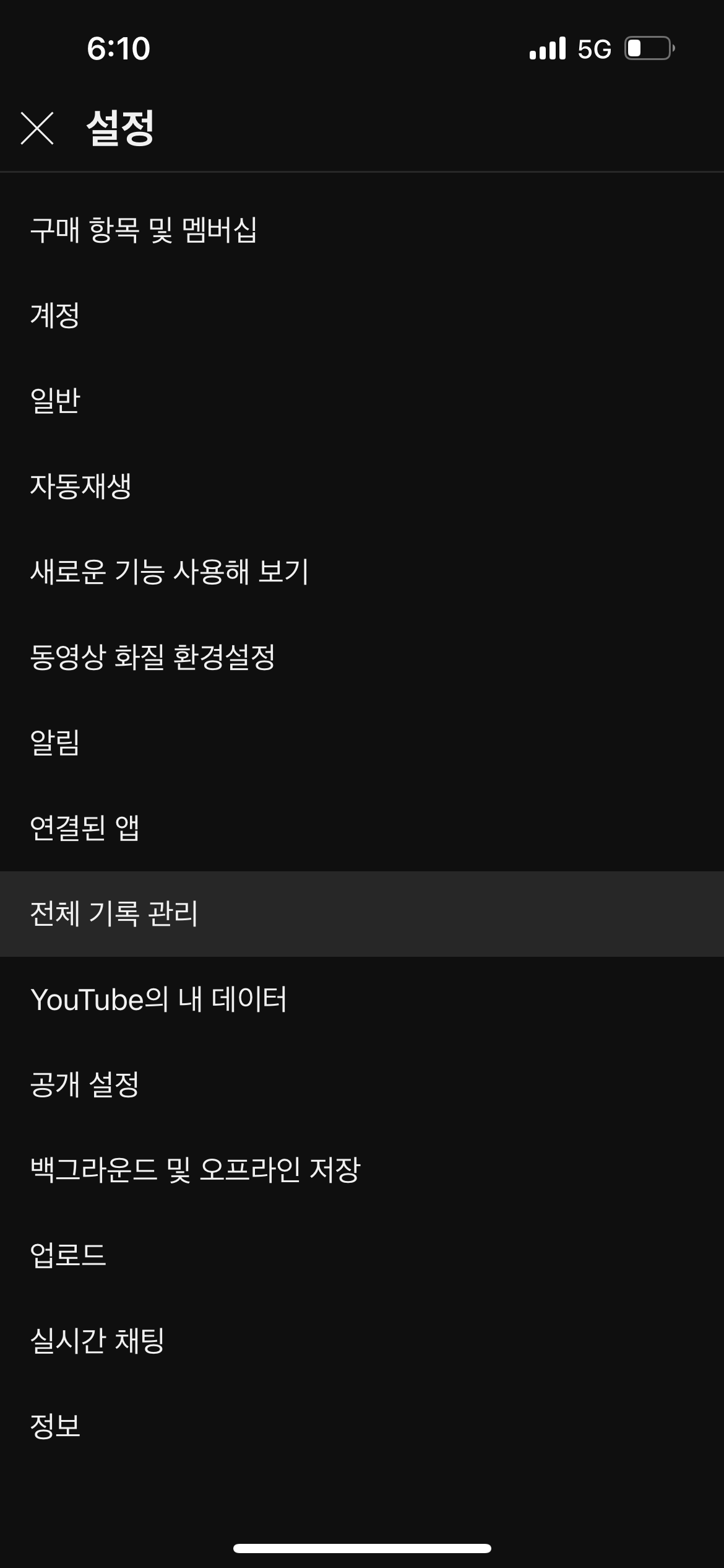 이어서, 설정 페이지의 "전체 기록 관리" 메뉴를 선택해줍니다.