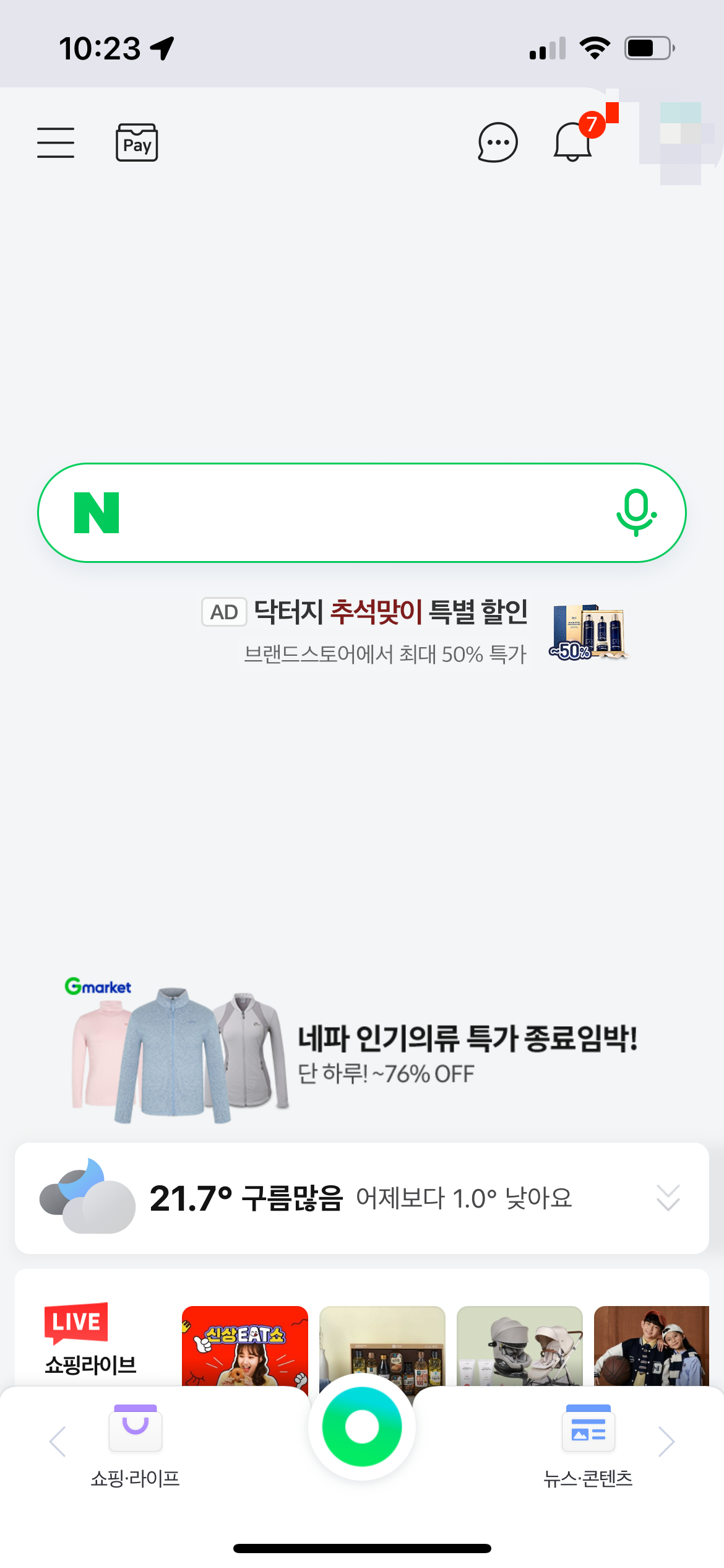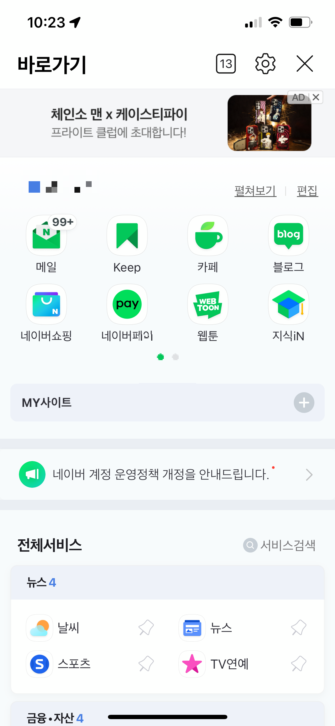 네이버 앱에서 좌상단의 목록 아이콘을 선택해주세요. 그러면 우측 화면이 나올거에요. 여기에서 우상단 톱니바퀴 버튼을 선택해주세요. 그러면 네이버앱 설정 화면으로 진입하게 됩니다.