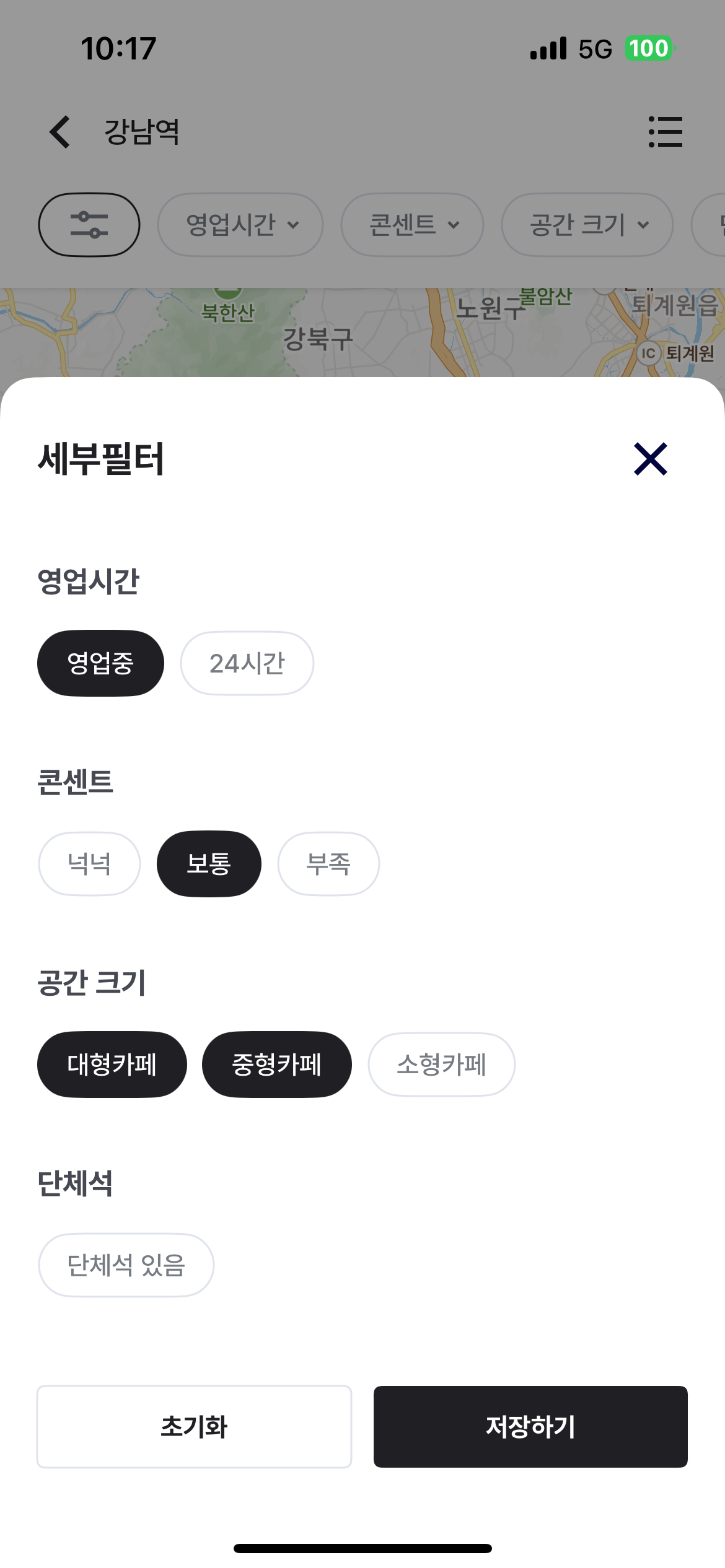 상세 필터 설정을 통해, 본인에게 필요한 카페 정보만 검색할 수도 있어요~! 👀