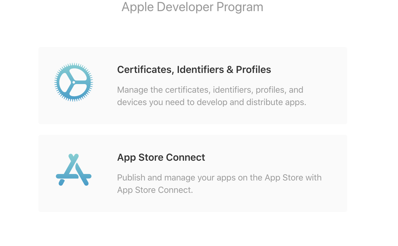 두개의 선택지가 있는데요. 여기서 Certificates, Identifiers & Profiles를 클릭해줍니다.