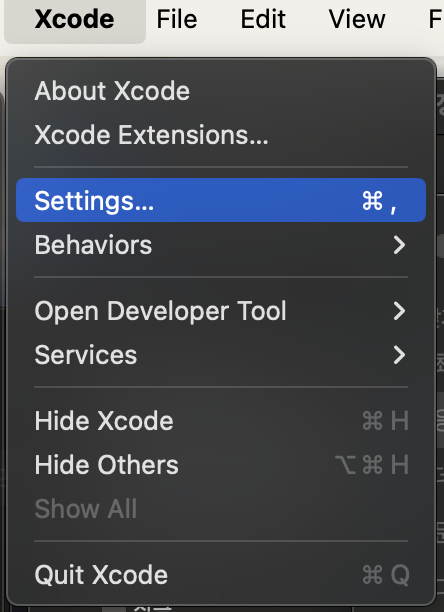 선택한 기본 Xcode app을 Xcode IDE 설정에서 확인하기