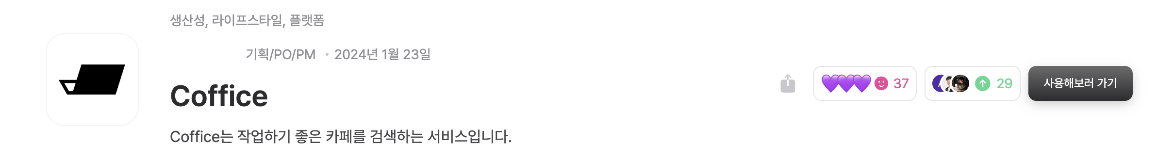 많은 사이드 프로젝트 개발자, 기획자, 디자이너, CEO 등의 분들과 이야기를 나누고, 피드백도 받을 수 있습니다. 더 나아가 커피챗을 주고받을 수도 있고, 디스콰이엇 측에서 프로덕트에 대한 홍보를 지원해주기도 하니까 활용하면 좋습니다.