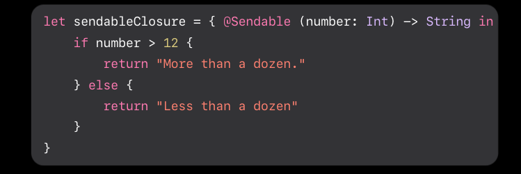 함수나 클로저에서도 @Sendable 속성을 사용할 수 있어요.