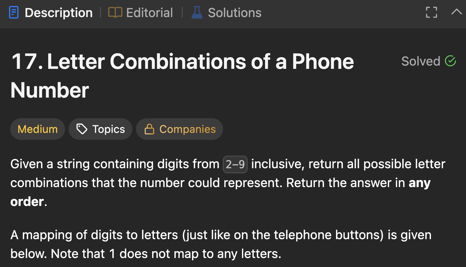오늘은 LeetCode의 Letter Combinations of a Phone Number 를 풀어보았어요. 바로 보겠습니다!