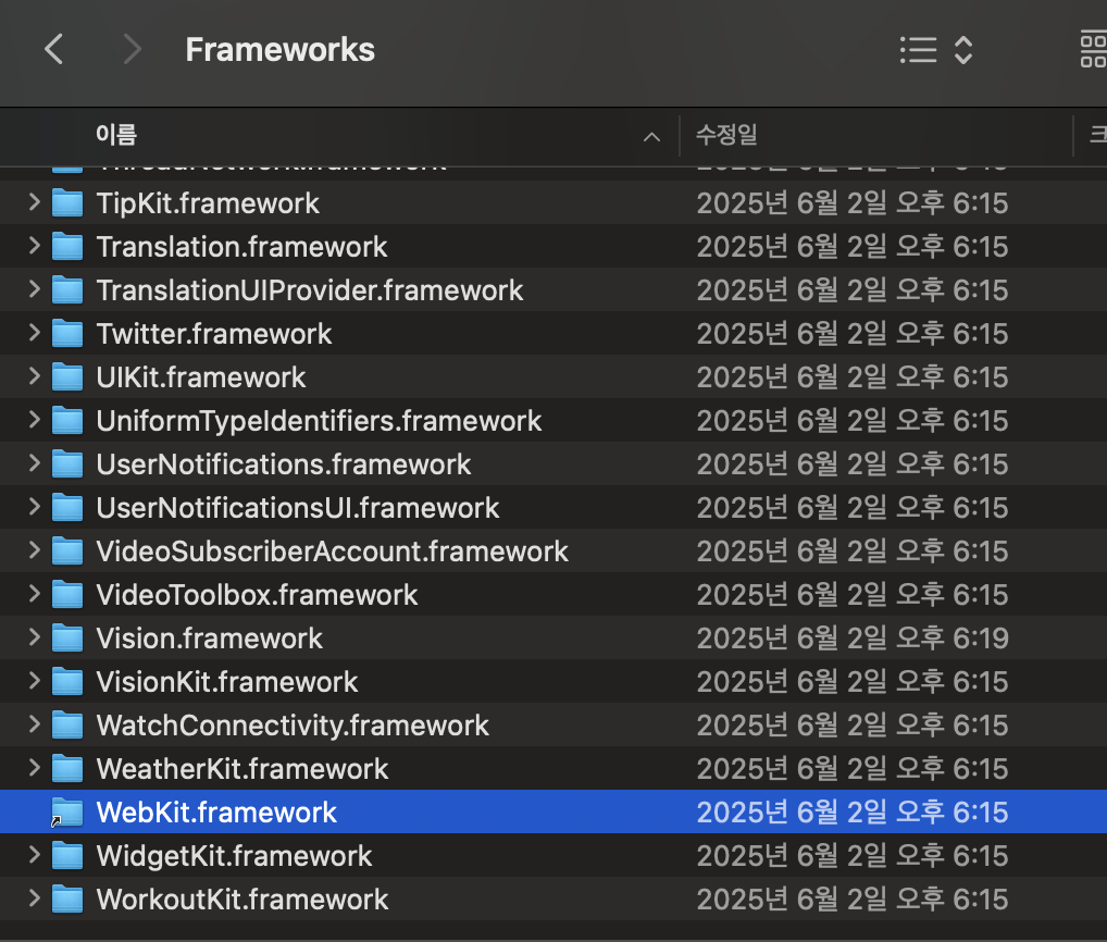 지겨워요 Webkit 관련 이슈인데요. tuist 등의 외부 라이브러리 의존성과 연관이 있는 것 같아요. tuist, TCA 기반의 프로젝트에서만 경험했던 컴파일 에러입니다. 근원지는 WKWebsiteDataStore.h 입니다. 왜 아냐면, 이미 이걸 작년에도 경험해봤거든요. ㅠㅠ