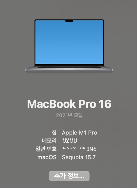 좌상단 애플 로고를 클릭 후, 이 Mac에 관하여... 를 클릭하시면 현재 macOS 버전을 알 수 있어요. 저는 15.5였는데, Xcode 26 설치를 위해서 15.7로 업데이트 했습니다.